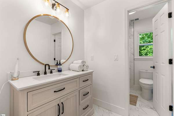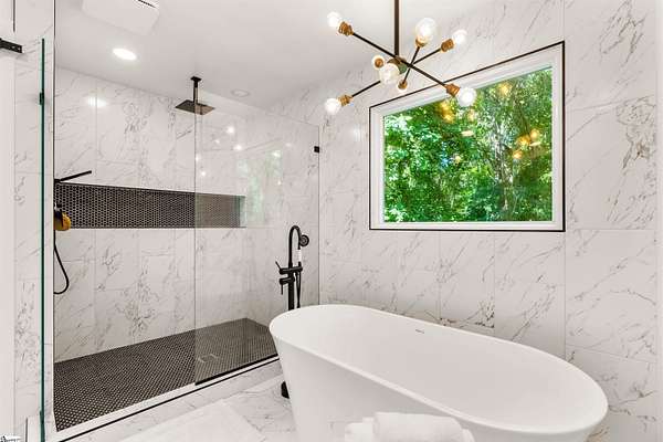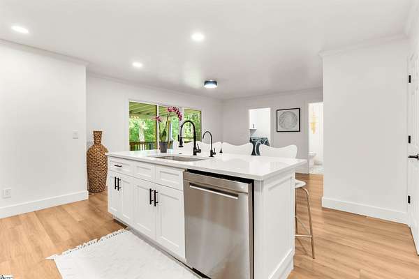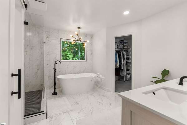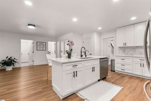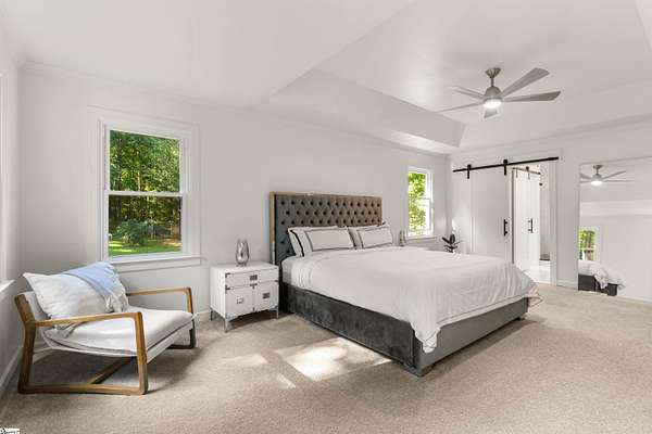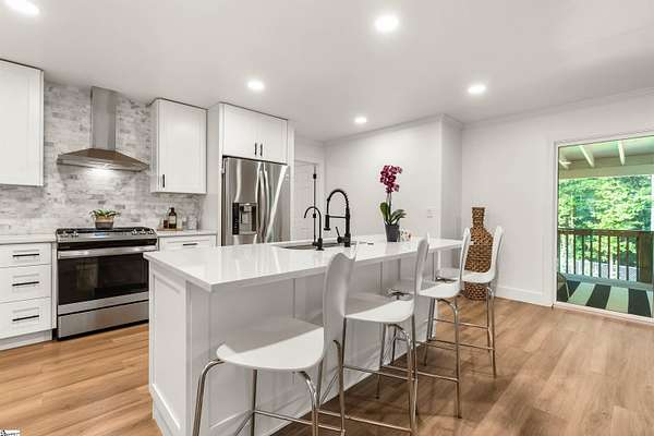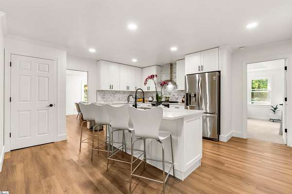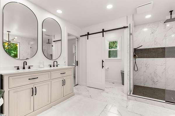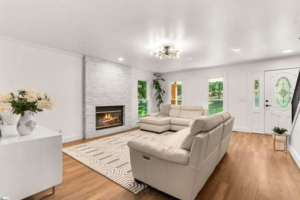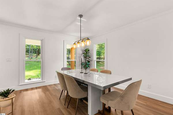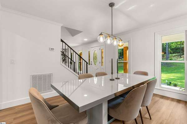 Oh you can definitely have room to spread out on this 6.3 acre property with NO HOA! This home is located in the desirable Simpsonville area, close proximity to the Carolina Springs Golf Course and zoned for the highly sought-after K-8 Rudolph Gordon School and new Fountain Inn High school! So much potential to make this home your own. New floors throughout the first floor, large eat-in kitchen and separate dining room, along with the first floor master suite completes the first floor with beautiful free stand tub and tiled shower and floors. Off to the new kitchen with quarts and new appliances is a covered deck that overlooks the beautiful and peaceful backyard and wooded acreage. You can spend your days enjoying the trail down to the creek enjoying all the nature and at night light up the fire pit for s'mores and relaxation. Full renovation was compete in 2024. Agents please see member remarks. Thank you