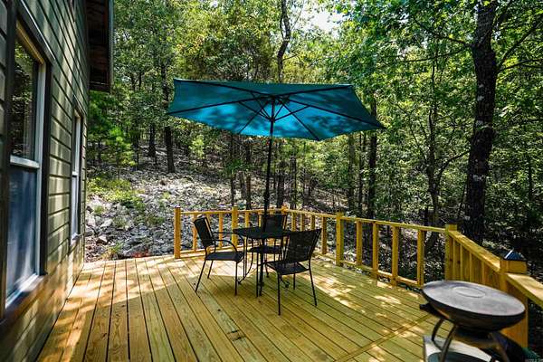 From downtown Hot Springs, head North on Park Ave. turn left onto Fox Pass Cutoff, turn left onto Peaceful Valley Rd, stay on Peaceful Valley for approximately 1.7 miles and turn left onto Leisure Terrace. Property will on the right.