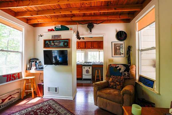 Est $2,078/moHand built Cabin sitting on 8 acres, loft bed, living room, kitchen, with two decks that having you feeling completely immersed in nature! This home isn't just real estate it's art you can live in! The owner is a craftsman who built this has his escape from a busy world. Step into this one of a kind property that the builder calls his refuge! This one you truly have to see to believe. Agents please see remarks.