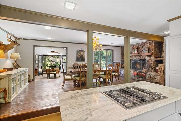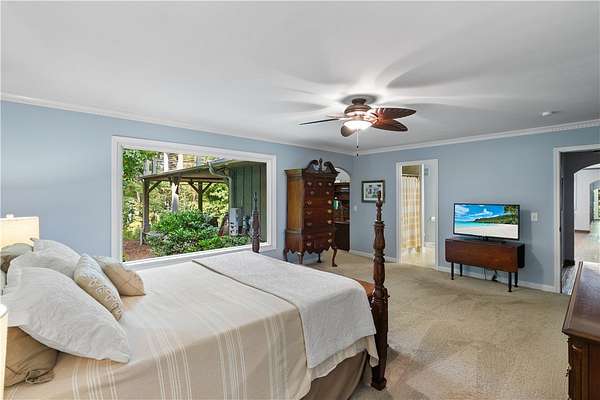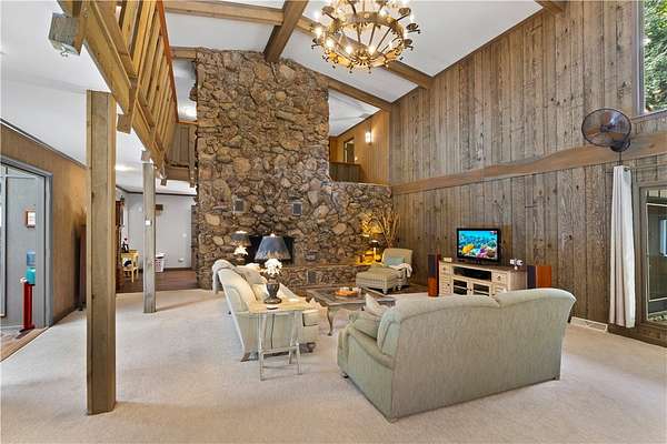Welcome to a one-of-a-kind lakefront sanctuary, where every detail has been thoughtfully designed to create an inviting and cozy haven. Nestled along Lake Hartwell and spanning over 4 acres combining the 2.9 parcel and the 1.5 corps owned, this exceptional home offers a perfect blend of warmth and charm, providing a peaceful escape from the everyday. Step outside to experience outdoor living with expansive porches providing breathtaking lake views, a covered dock, and a custom pool set in North Carolina flagstone. The private in-ground pool, surrounded by greenery, creates a peaceful setting for relaxation and entertainment, with every room in the home overlooking this oasis, perfect for hosting or quiet enjoyment. Upon arrival, you are greeted by the grandness of the estate. Spanning over 4300 sq ft in the main home, this estate is perfect for full time residency or family vacation home. As you cross the threshold through majestic double doors, the stunning wood burning stone fireplace commands your attention soaring to an impressive 22 feet. Everyone loves the smell of a wood fire. Each stone in this estate was meticulously transported by train, taking months to place; testament to the craftsmanship invested in creating such an architectural masterpiece. The newly remodeled kitchen combines modern functionality with timeless style, featuring a sleek tile backsplash that adds a touch of elegance and a high performance gas stove for the passionate cook. A standalone refrigerator and freezer provide generous space for all your culinary needs, complemented by a large pantry and ample storage solutions. An oversized window above the double sink offers a beautiful view of the gardens, fishpond, waterfall, allowing natural light to flood the space. The owner's suite is a private retreat within this spatial estate. You escape reality when you sink into bed overlooking the lake with a stunning oversized window. This main level suite also features separate his and hers bathrooms and a large walk-in closet. Working, crafting, or any hobby can easily be enjoyed tucked away from the home in the attached office which opens onto the lower porch where you can savor the tranquil views of the lake. The home boasts two additional suites on the upper level, each equipped with its own full bathroom and walk-in closet, providing privacy and comfort for both family members and guests. This level also includes a flexible sleeping loft and a library overlooking to the spacious gardens. The upstairs loft offers a stunning vantage point overlooking the grand expanse of the great room below, creating a sense of openness and connection throughout the home. The loft is a versatile space perfect for a playroom, sitting area, extra sleeping space or game room. Sunlight pours in through the large windows, enhancing the loft's airy ambiance. Double doors open to a sprawling 750 square foot second story deck, where you are greeted by breathtaking views of the pool and Lake Hartwell. The deck becomes an ideal spot for outdoor dining, morning coffee, or unwinding with the tranquility of water views and gentle breezes. The main house has an attached 2 car garage. Below the guest house, a spacious 10-car garage offers extensive room for an auto collection, indoor storage for boats, or workshop with a private half-bath and laundry. Attached to this lower-level garage is a charming greenhouse, ideal for cultivating plants and gardening. The guest house oasis has a large front porch overlooking the estate gardens and pool. This large apartment is an ideal space for guests with it's open layout. Within the 850+ sq ft you will find a large bedroom, a full bath, living space, dining area and full kitchen with a large island with laundry access below. You truly have to see this home in person to experience every magnificent detail that is offered. Full 1 Year Transferable Home Warranty includes pool and guest house. SC Licensed Agent is related to the seller.