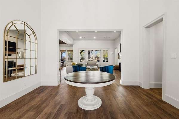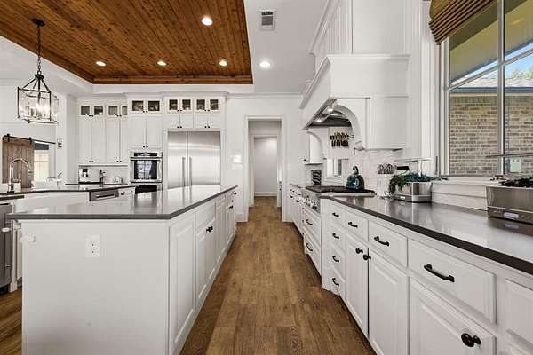 Exceptional custom single-story home on 1.73 acres in the heart of Colleyville. Built in 2017 and thoughtfully designed for both everyday living and entertaining, this nearly 5,000 SF home features an open-concept living area and chef’s kitchen with Thermador stainless steel appliances, six-burner gas cooktop, double ovens, large island, walk-in pantry, and butler’s pantry with wine refrigerator. The spacious primary suite includes a spa-inspired bath and expansive custom walk-in closets. Three additional bedrooms are arranged in a split layout, along with a game room with wet bar. Expansive covered outdoor living and dining areas overlook the pool and spa, outdoor kitchen, fire pit, and beautifully landscaped grounds. Additional features include a barn, private well for partial irrigation, storm room, circular drive, and four-car garage. Located within highly regarded Grapevine-Colleyville ISD.