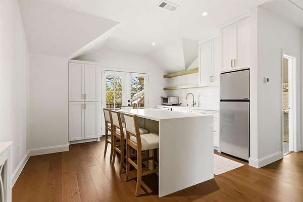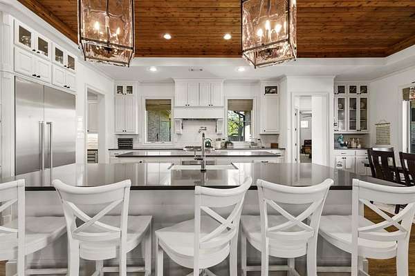 - Built-In Wine Cooler, Decorative Lighting, Dry Bar, Flat Screen Wiring, High Speed Internet Available, Kitchen Island, Natural Woodwork, Open Floorplan, Sound System Wiring, Wet Bar