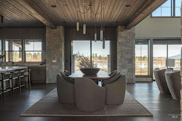 Experience the pinnacle of McCall luxury living in this extraordinary waterfront Boise Parade of Homes, where impeccable craftsmanship, designer finishes, and thoughtful amenities meet serene mountain-lake beauty. This architectural masterpiece offers 4 spacious bedrooms, 5 spa-inspired bathrooms, and a dedicated office, all designed to blend elegance with everyday comfort. Step into an airy great room filled with natural light, featuring soaring ceilings, dramatic water views, and a striking stone fireplace that anchors the space with warmth and sophistication. The chef's kitchen is a true centerpiece, boasting Wolf appliances, custom cabinetry, and a generous island that flows seamlessly into the dining and living areas-ideal for hosting gatherings of any size. The entertainment-ready game room elevates leisure with built-in surround sound, a wet bar, and television, creating the perfect retreat for movie nights, celebrations, or relaxing weekends. Each bedroom offers a peaceful escape, while the luxurious primary suite enhances the experience with panoramic waterfront vistas and a spa-like en-suite. Outdoor living shines with direct waterfront access and expansive spaces designed for year-round enjoyment, from summer days on the water to winter evenings by the fire. This Parade Home offers a rare opportunity to own one of McCall's finest luxury waterfront properties!
