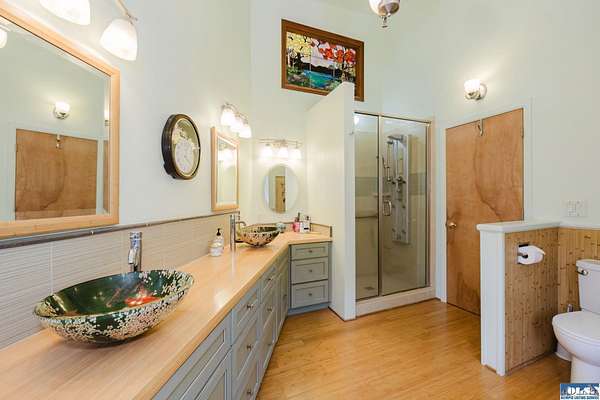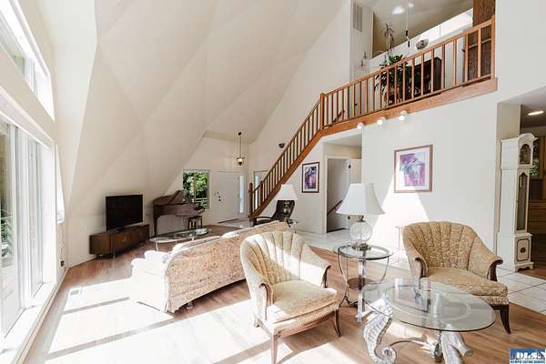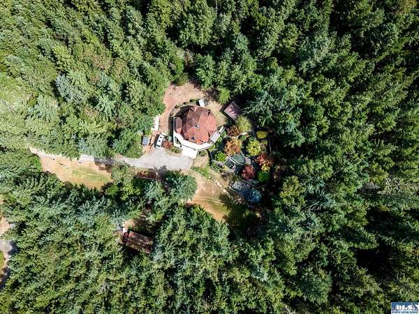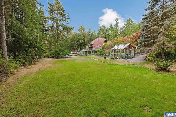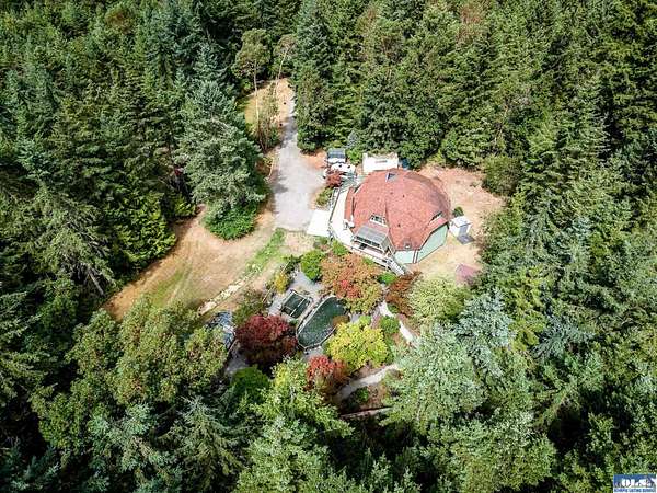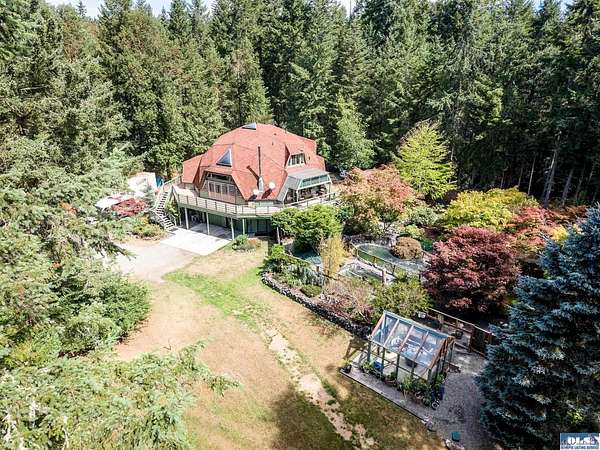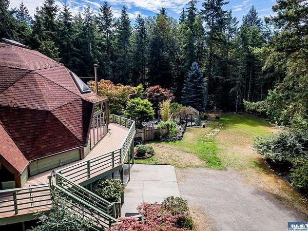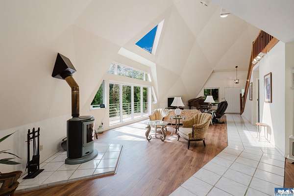 Experience the magic of this unique geodesic dome home nestled on 5+ scenic acres. Bathed in natural light from abundant windows and skylights, this architectural gem offers 3 bed, 2.5 bath, and newer wood floors in the airy living room. Chef's kitchen w/ custom cabinets, island, and walk-in pantry. The spacious primary suite features two walk-in closets and a spa-like jetted tub. Geo thermal heating and cooling. Swedish reburning fireplace. Enjoy a generous family room, dedicated workshop, greenhouse, koi ponds, multiple outbuildings, chicken coop, and a horse barn - perfect for hobby farming or peaceful country living. A rare blend of distinctive architecture and country living with space to create your dream lifestyle.