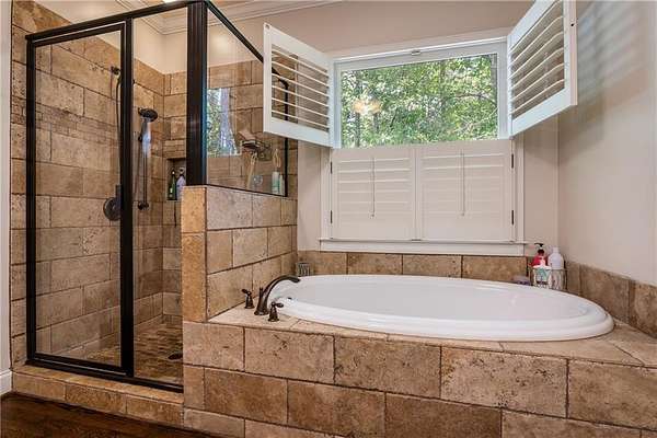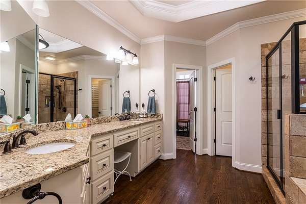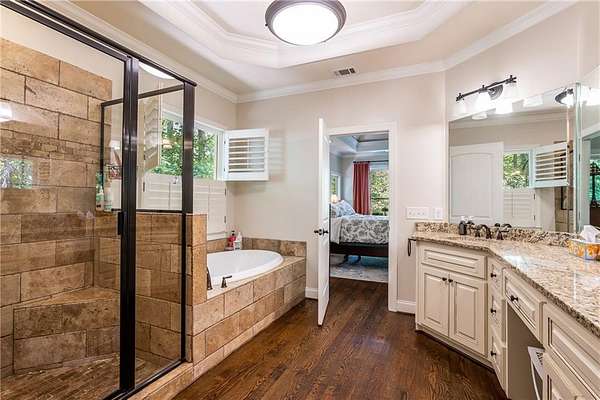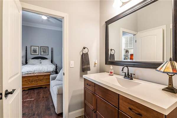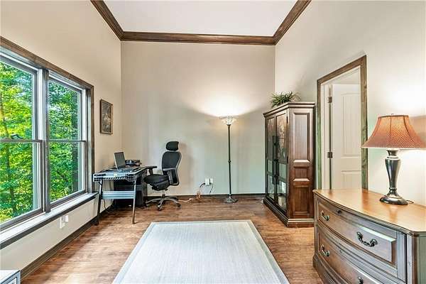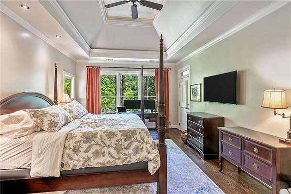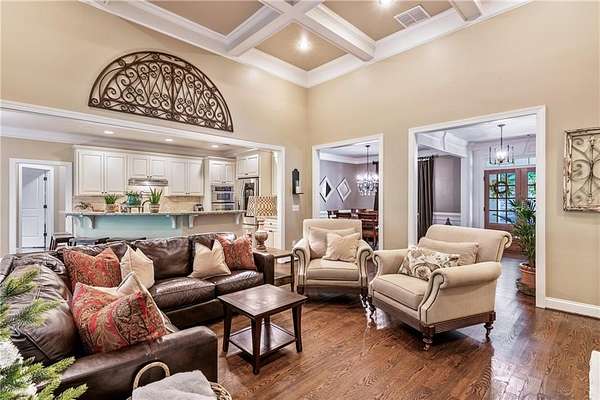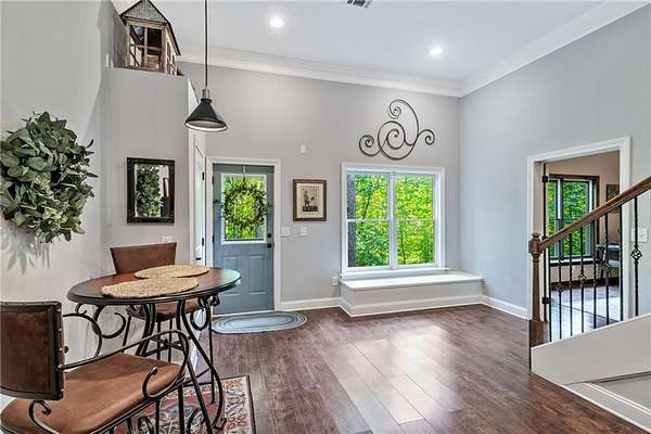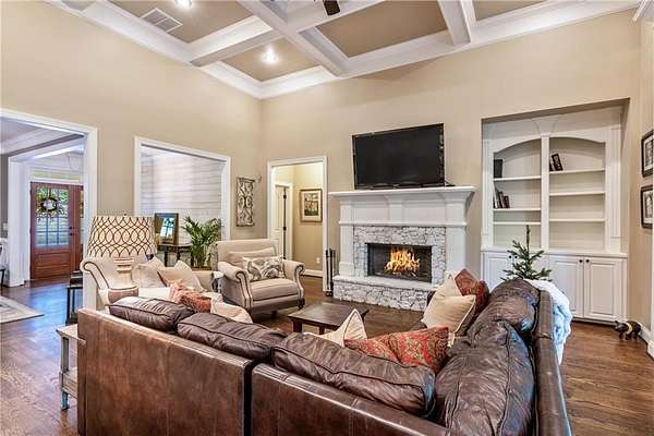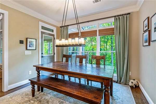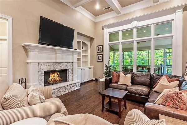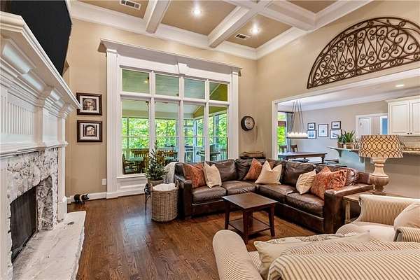 As you pull up, you'll fall in love with the expansive rocking-chair front porch. Enter into the inviting foyer and you'll soon see the soaring coffered ceilings of the main living area. With a separate dining area, breakfast bar, and eat-in kitchen; there's plenty of space for entertaining. The large screen porch off the kitchen faces the community hiking path and Etowah River (close enough to take your kayaks and pop in!)