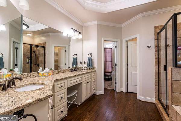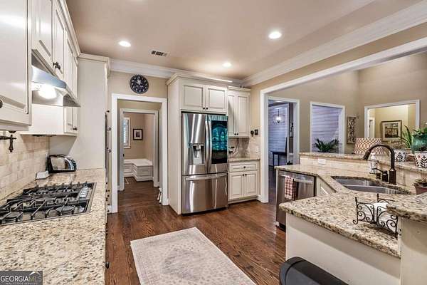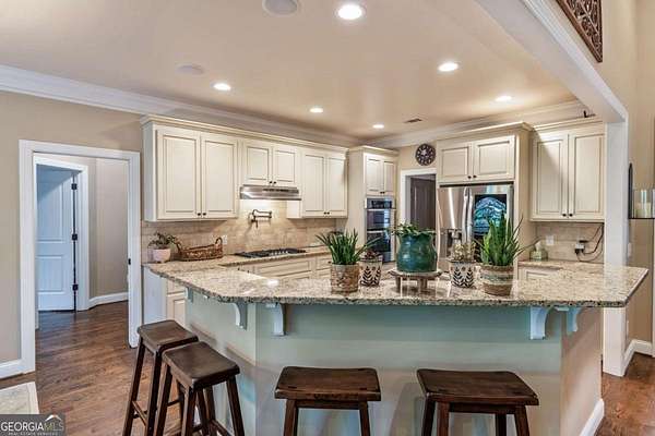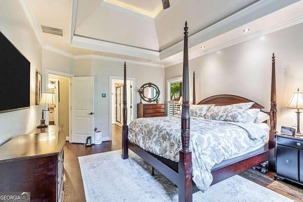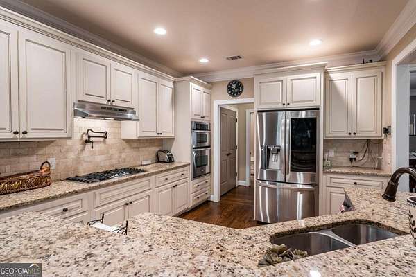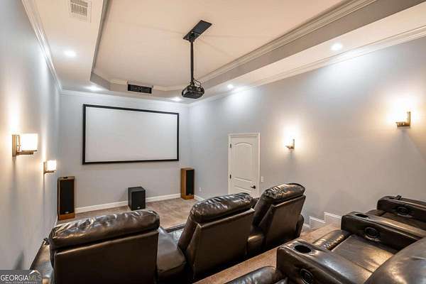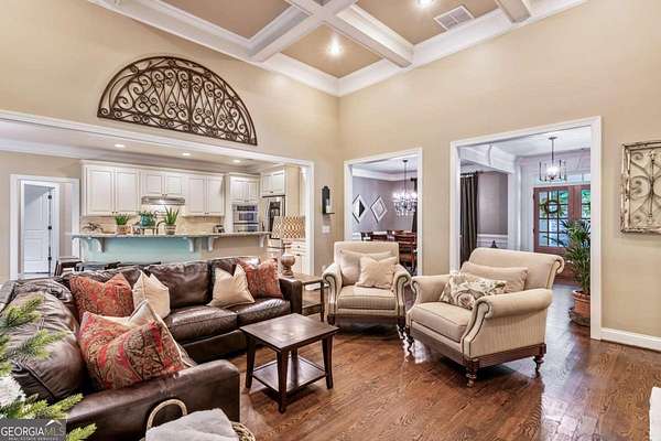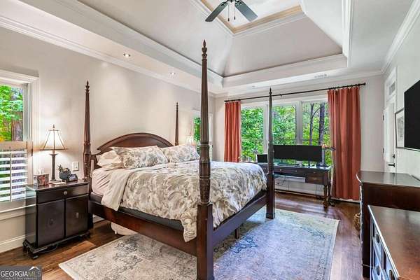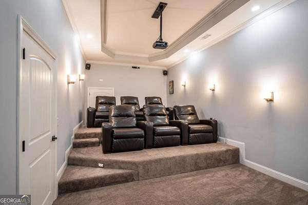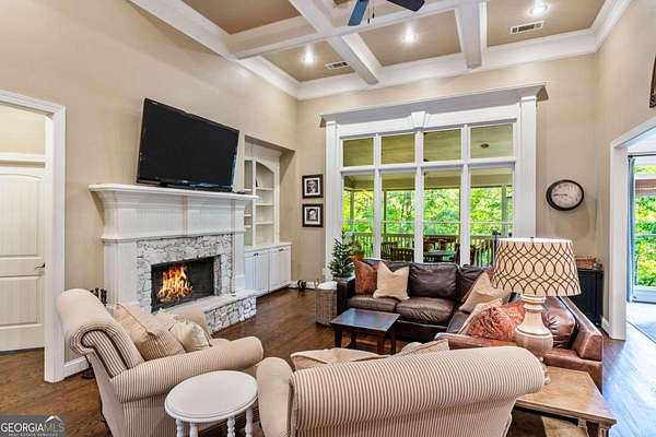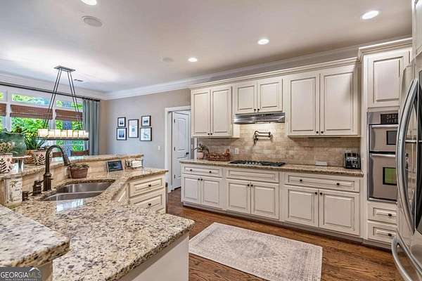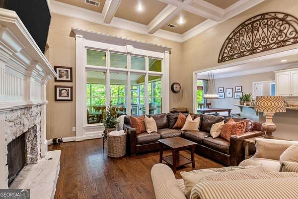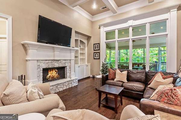 Your dream home just hit the market! This executive-style home is divinely nestled on over 1.5 acres in the sought-after Governor's Preserve subdivision. On a cul-de-sac, but tucked away down its own private drive; this custom-built Frank Betz home is heaven on earth! With 7 bedrooms, each with their own walk-in closet, and 5 1/2 baths; there's plenty of room for everyone! The finished terrace level is perfect for multi-generational living. As you pull up, you'll fall in love with the expansive rocking-chair front porch. Enter into the inviting foyer and you'll soon see the soaring coffered ceilings of the main living area. With a separate dining area, breakfast bar, and eat-in kitchen; there's plenty of space for entertaining. The large screen porch off the kitchen faces the community hiking path and Etowah River (close enough to take your kayaks and pop in!) The master on main is oversized and well-appointed with a large ensuite. Also on the main level are two additional bedrooms, sharing a bathroom, and a half bath as well. Heading to the 2 1/2 (plus!) car garage, you'll pass the fabulous mud room and laundry room. Upstairs are two more bedrooms, each with a full bath. The basement, with its 12' ceilings, full kitchen, office, media room, two bedrooms, and full bath; is perfect for extra living space, teen or in-law suite (don't miss the super fun loft in the secondary basement bedroom!). In addition to the aesthetic appeal of this amazing home; it has been insulated with a closed-cell spray foam that keeps monthly energy bills to around $150 - absolutely amazing for a home this size. This home is located in a wonderful neighborhood, great town, near shopping and highly-rated schools - schedule your appointment to see it today! You won't be disappointed.
