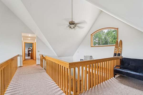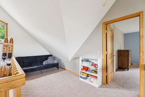 Nestled on 2.59+/- private acres w/160 ft of Wolf River frontage, this stunning oasis is perfectly located in the heart of Fremont close to all the hot spots w/both river & channel access. This 5-brm, 3.5-bath home offers 3,944+/- sq ft of living space. Covered porch leads to airy main level w/2 story foyer, vaulted GR w/wood-burning FP & floor-to-ceiling windows. Light-filled kitchen w/pantry, dinette, & hearth rm washed w/windows. Main-floor primary suite features jetted tub, tile shower & walk-in closet. Loft overlooks GR w/2 bdrm & 2nd full bath. Walk-out LL includes FR w/wood FP, game rm, + 2 bdrms & 3rd full bath. Extras include: FF laundry, huge heated finished garage & 797 sq ft future bonus space. Come be part of a place where luxury is the backdrop of an extraordinary way of life