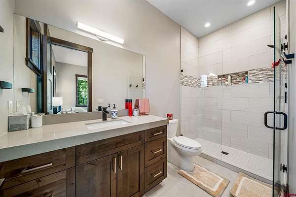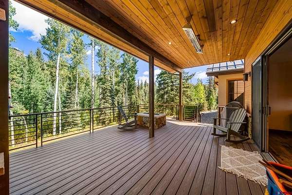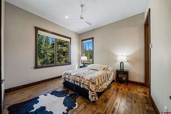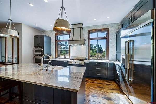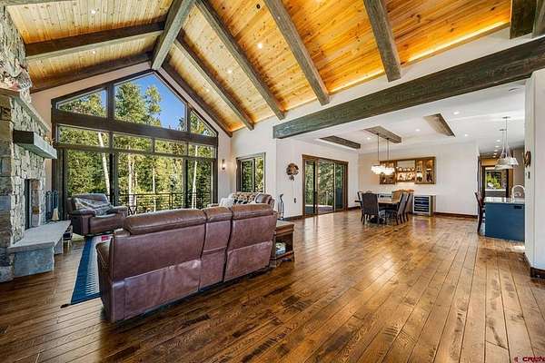 Taylor Leeder, R1 Colorado, C: 970-759-8071, TJLeederRE@gmail.com, www.crenmls.com: Set within the coveted Two Dogs Subdivision--one of Durango's most exclusive luxury enclaves--this custom residence offers a level of craftsmanship and setting that is truly unmatched. Just five minutes from Purgatory Resort, the home combines effortless mountain living with world-class design, creating the perfect retreat for discerning buyers.From the moment you arrive, the home's commanding presence is evident. Soaring beam-and-tongue-and-groove ceilings, solid 5" beveled white oak plank floors with shiplap plane, and expansive walls of glass frame panoramic views of Castle Rock and the surrounding peaks. Golden aspens and evergreen pines create a private sanctuary that shifts in beauty through every season.The thoughtfully designed layout offers three bedrooms, four bathrooms, a dedicated office, and an additional bonus room. The primary suite enjoys its own private wing with a spa-like bath featuring an Avalanche marble countertop, a sauna, heated towel rack, and a Toto Washlet with heated seat, bidet system, and soft-close lid. A private deck from the suite opens to sweeping mountain vistas, creating a true sanctuary. Two additional en-suite bedrooms provide comfort and privacy for family and guests.The main living area exudes warmth and sophistication with a floor-to-ceiling natural stone fireplace, generous dining space, and a chef's kitchen. This culinary masterpiece is outfitted with JennAir appliances, a custom exhaust hood, hot water dispenser, and custom cabinetry. Counters include Carrara Marmi quartz at the cooktop and dry bar, paired with a striking Lebon granite island. The dry bar also features a wine cooler, beverage refrigerator, and illuminated cabinetry.Every detail has been considered: in-floor radiant heat throughout the home, a heated garage with its own radiant system, a 1,000-gallon propane tank, water softener, and interior solid wood doors measuring 1-3/4" thick. Hunter Douglas blinds adorn every room, while the spacious laundry room includes a dedicated dog bath.Technology and comfort converge with a fully integrated smart system by Axxis Audio. The home is equipped with structured wiring, remote-controlled lighting, thermostats, and security systems. Three exterior security cameras, a monitored alarm, WiFi extenders for full-home coverage, and programmable labeled light switches ensure security and seamless living.One of the home's most captivating features is the expansive back deck, complete with a propane fire pit and built-in infrared heater, ensuring year-round enjoyment of the mountain setting. Whether entertaining or savoring quiet moments, this outdoor haven perfectly captures the essence of luxury Colorado living.For the buyer seeking exclusivity, elegance, and proximity to world-class recreation, this Two Dogs estate represents an extraordinary offering--an exceptional mountain home that simply cannot be replicated.