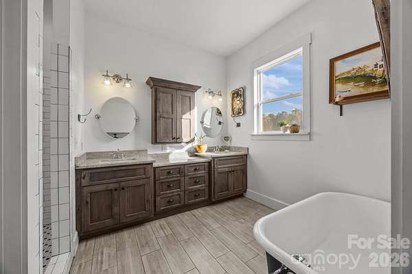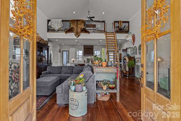 Welcome to your dream country retreat, perfectly situated on over 8 picturesque acres & designed for those who crave space, comfort, & endless possibilities. This outdoorsman's paradise offers an impressive array of outbuildings including a pole barn, barn with stalls, three log buildings, and a private basketball court. Built in 2018, the beautiful home features 2,794 square feet with a desirable split-bedroom floor plan and open-concept design. Step inside through gorgeous double front doors to find a spacious family room anchored by a cozy fireplace, seamlessly flowing into the dining area and oversized kitchen. The kitchen is a showstopper with a large center island, farmhouse sink, sparkling cabinetry, electric range, and custom hood vent-perfect for everyday living. The home offers 3 bedrooms, 2.5 bathrooms, plus a bonus loft room for added flexibility. The primary suite is a true retreat, featuring a double vanity, tiled walk-in shower, soaking tub, and a walk-in closet. Two generously sized guest bedrooms share a spacious guest bath. Enjoy peaceful mornings on the covered front porch or unwind in the evenings on the screened-in back porch, taking in the serene views of your expansive property. With endless storage and room to roam, this one-of-a-kind property blends modern comfort with country living at its finest.