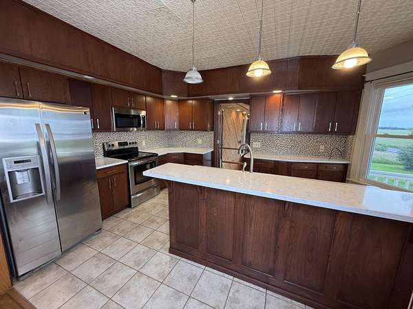 Acreage with an unmatched view!!!!! This 4 bedroom (5th possible) 3 bath home has so many things to offer!! Imagine waking each morning to a view of the Missouri River bottom that goes on for miles and miles that includes an amazing view of the Decatur Bridge!! This 1918 Montgomery Ward catalog house sits on 3 acres which includes a 4-car attached garage with heated floors, a beautifully remodeled kitchen with Quartz countertops, main floor laundry, a cedar accent jacuzzi room with jacuzzi, a gorgeous stone fireplace, and much much more!!! A new roof was put on in 2011. The master bedroom and adjoining master bathroom were both added on in 1996. The other main floor bathroom was updated with beautiful mosaic tile in 2017. NEW windows on the main floor and NEW sliding doors let in so much natural light with great views outside. There is also 3 bedrooms upstairs with a full bathroom. Outside you have a cute paver patio, a storage building, and mature trees. Come take a look at this gorgeous acreage and check out these farmland views from the large front deck...