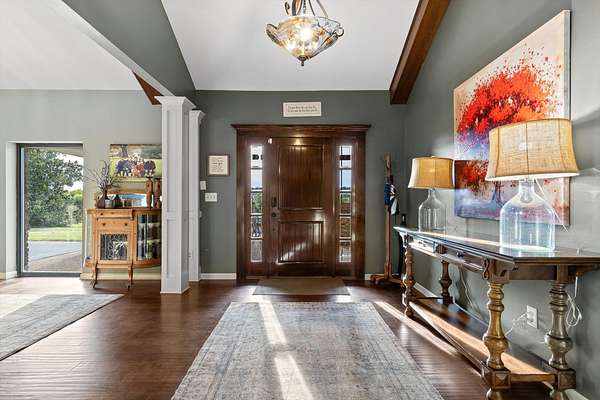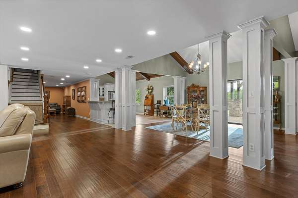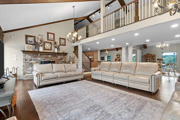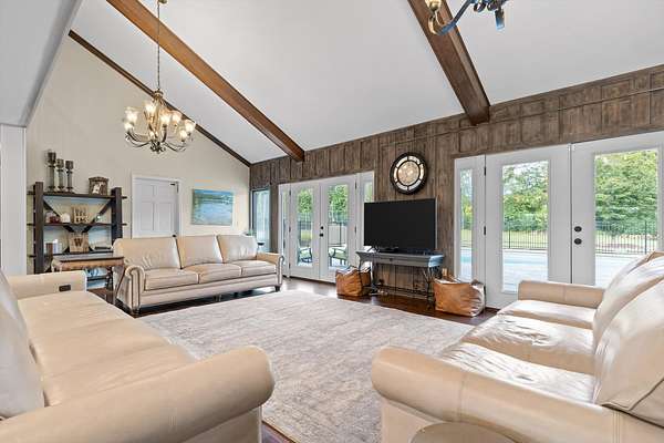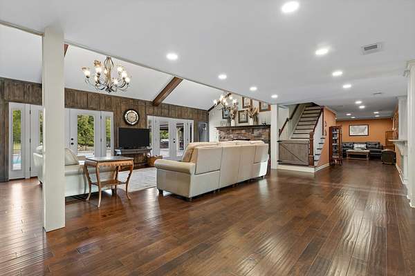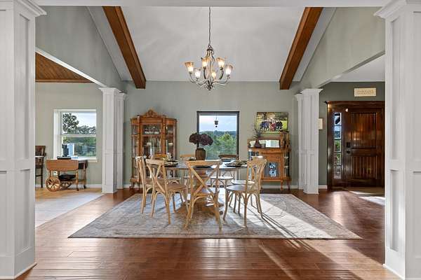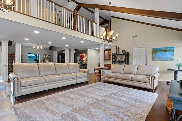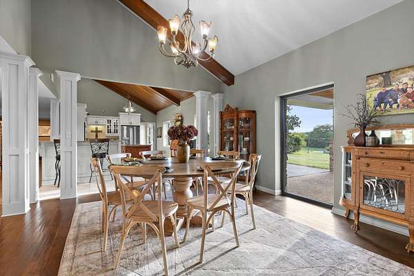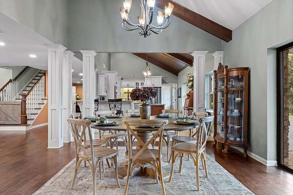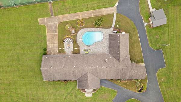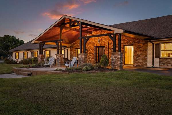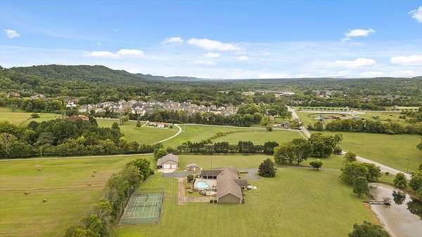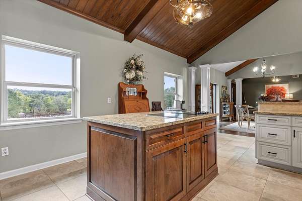 Welcome to your secluded estate, where convenience meets beauty. Located at 2120 Ooltewah Ringgold Road, this inviting home has everything you need on the main level and features an attached apartment, barn, workshop, pool, and tennis court. As you walk inside, you're greeted by the natural light that radiates through the expansive windows. The dedicated dining area allows for many people to gather around and create lasting memories. The cream cabinets bring warmth to the kitchen that boasts stainless steel appliances, granite countertops, and double ovens. Off of the kitchen you will find the pantry and an oversized laundry room with ample storage. The living room is anchored by the wood burning fireplace and is the perfect place to unwind while taking in the mountain view. The oversized primary bedroom enjoys its own exit to the patio fire pit, while the bathroom includes double sinks, granite counter tops, and a massive shower. There is an oversized closet that has plenty of storage with built in shelving, and additional washer and dryer hookups. There are an additional 4 bedrooms in the main part of the house, and another room that could be used as a bedroom or office. The upstairs loft is a unique area with endless possibilities! The attached apartment has its own entrance, and it is the perfect set up for extended relatives or additional rental income! It has a full kitchen, living room, two bedrooms, and two full baths. Located just 2 minutes from grocery stores and 15 minutes from the shopping and restaurants of both Cambridge Square and Gunbarrel Rd, this tucked away home on 9 acres is a rare find! Call to enjoy southern living at its finest!