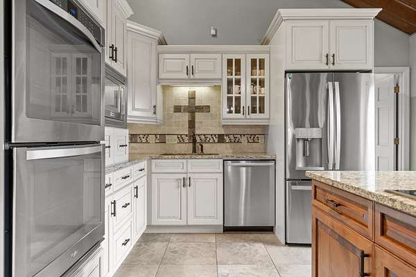 - Built-In Electric Oven, Built-In Electric Range, Dishwasher, Disposal, Double Oven, Microwave, Stainless Steel Appliance(s)
