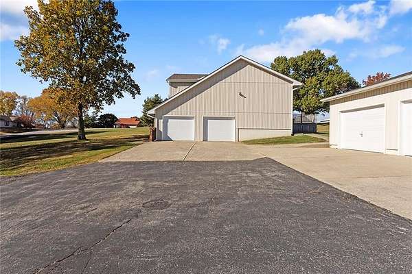 Country and garages!!! East of William Jewell College. Just off of H Highway. A little slice of heaven awaits the next homeowner. Beautiful sunsets! Easy to maintain property with vinyl siding and double hung vinyl insulated windows. 4 Bedrooms, 3 Bathrooms and 5+ Garages. Large kitchen with walk-in pantry. Built-in additional prep area and cabinetry in original laundry closet. Large table area. Hand-scrapped flooring in country kitchen/table area and down the hallway. Spacious master bedroom and walk-in closet. Roof 2 years old. New gutters changed from 3" to 5". All 5 garage doors less than 2 years old. HVAC 6 years old. New carpet in lower level November 2025. Detached garage is very convenient to the house and has a concrete floor. Professional photos to follow Saturday but, don't wait!!! See it soon!