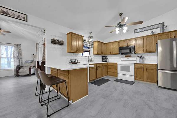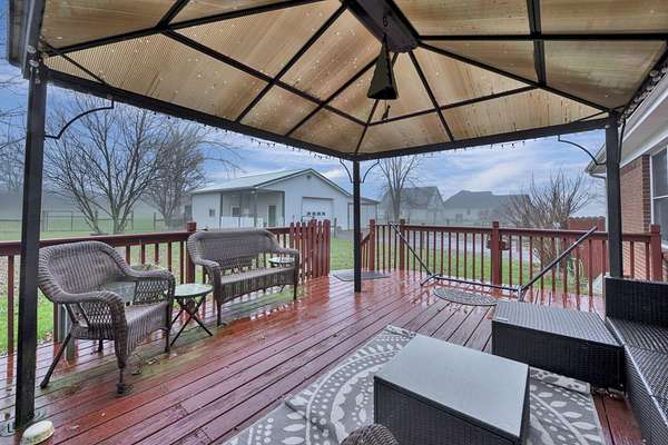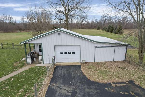Welcome to this beautiful 2,033 sq ft ranch nestled on 3.5 acres of peaceful country living. This thoughtfully designed home offers 3 bedrooms, 2 full baths, and a flexible floorplan with a first-floor laundry and a bonus flex room perfect for an office, playroom, or additional living space. The heart of the home features durable LVP flooring, a cozy fireplace, an inviting layout, and a comfortable flow ideal for everyday living. The primary suite is a true oasis with two walk-in closets, a spacious layout, and a luxurious walk-in shower. Outside, enjoy the wide-open views overlooking surrounding farmland, offering privacy and serenity. Relax or entertain on the back deck with gazebo, ideal for morning coffee or evening sunsets. A 2-car attached garage adds everyday convenience, and the detached garage with heated workshop is perfect for hobbies, equipment, or extra storage. This one checks all the boxes - comfort, land, workshop space, and a peaceful setting. A rare find!