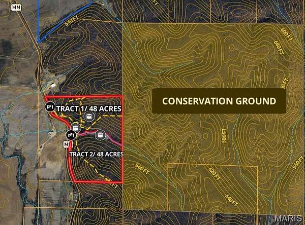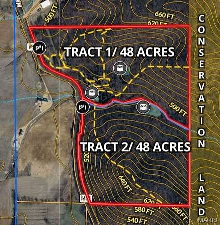 This property is being offer in its entirety or in two separate tracts of approximately 48 +/- acres each.