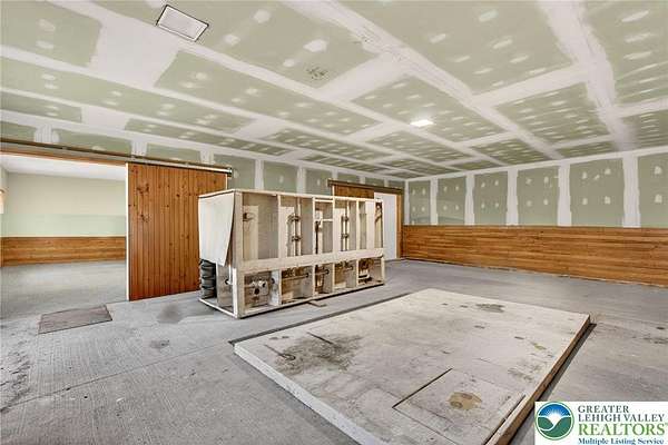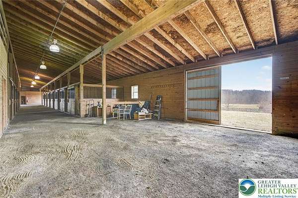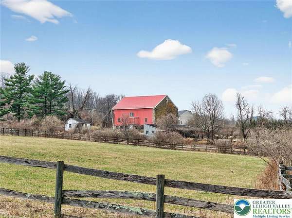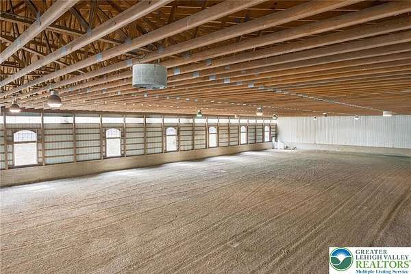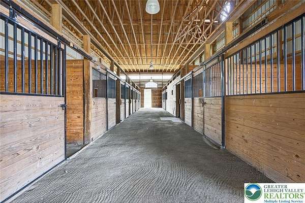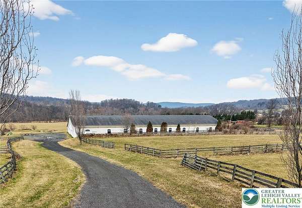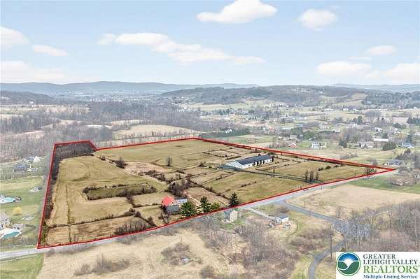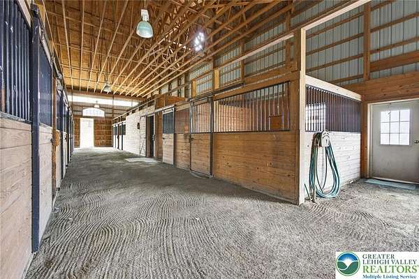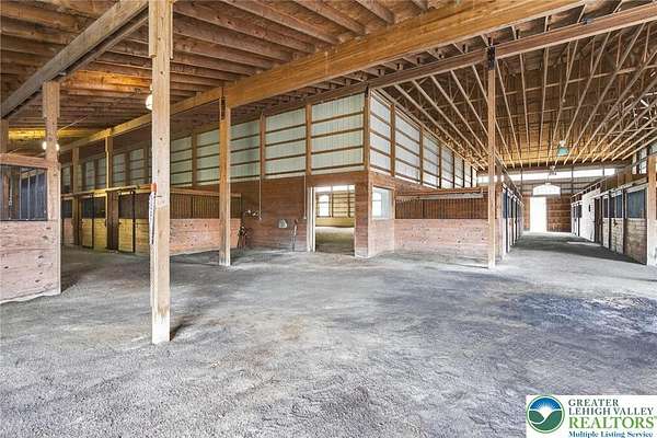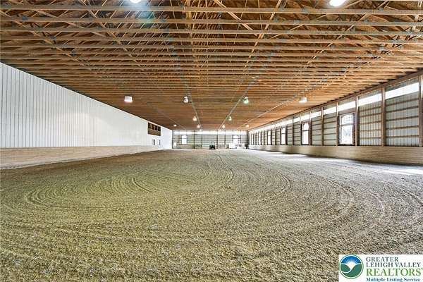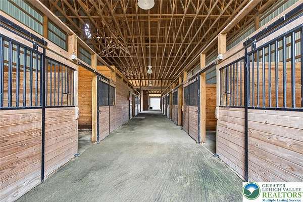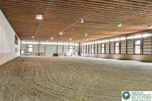 Welcome to Saucon Creek Farm! If you have dreamed of owning a premier horse farm in the Lehigh Valley, this is your chance! This equestrian facility offers a fantastic opportunity for professional use, a private estate, or potential residential subdivision. Located in Southern Lehigh School district, near The Ridings at Saucon Creek, the property provides quick access to Route 309, I-78 and the PA Turnpike; and is just minutes to the Promenade Saucon Valley. Enjoying level topography and rolling pastures, this facility is an equestrian lover's dream! * * Features: . Main Barn: 18'+ ceilings and 23 (12'x12') Southern Yellow Pine stalls; removable partitions allow for oversized stalls- the layout permits additional stall expansion. . Electric to all stalls . Indoor Arena: 80'x200' with Perma-flex rubber footing over angular sand; includes an upper-level viewing area. . Also includes: 16'x24' Office/Feed room, 12'x24' Storage Room, and a dedicated Tack Room/Lounge with viewing windows into the indoor arena. . Additional Amenities: Two wash stalls with hot water, and a full bathroom with shower; Two 24'x36' bonus rooms (over 2,300 square feet of finished space) offer flexible space for meetings, staff, or therapy area. Two Aquacisers are negotiable. . Grounds & Outbuildings: . Outdoor Arena: 150'x250' with blue stone and rubber footing. . Turnout: 14 pastures and 9 pens; significant acreage remains available for additional pastures or an outdoor course. . Bank Barn: 60'x36'- .Constructed with three stone walls, one metal wall, and a metal roof. . Tax records show 38 Acres; survey shows 42 Acres- Buyer to Verify . * * This expansive acreage combines high-tier training infrastructure with a prime location for commuting and accessibility, and also offers possible subdivision potential (buyer to verify with municipality). **Please do not visit property without an appointment.