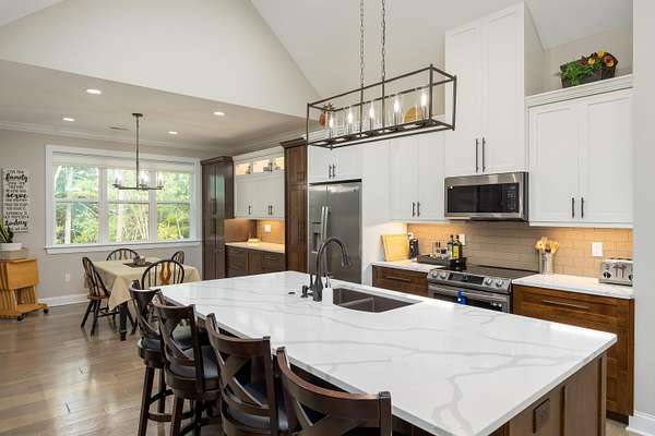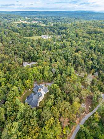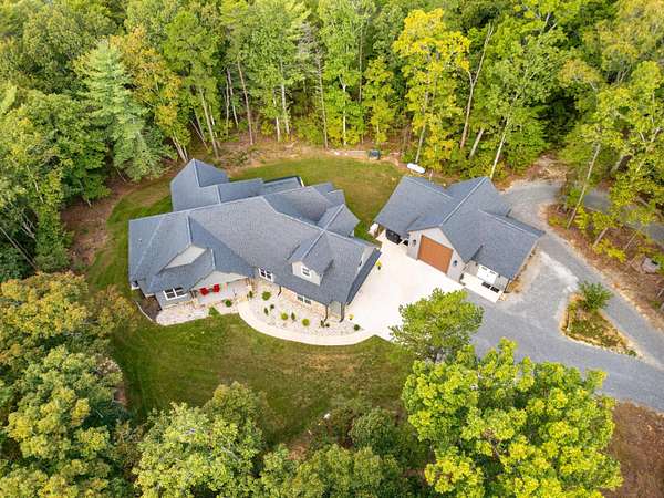 A rare find - mountain living at its best! Solitude and privacy upon 6.80 acres. Quality custom built. Newer (2022) construction. Luxurious primary suite on the main level. Features luxurious primary bath, his & her vanities, garden tub, tile floors, custom shower with dual shower heads w/converter valve, toilet closet and walk-in closets. Split floor plan consisting of bedroom #2 with full bath #2 and bedroom #3 with full bath #3 also all on the main level. Open floor plan includes a separate dining room, family room with cathedral ceilings and mountain stone fireplace (gas logs). Engineered hardwood floors, gourmet kitchen features large pantry closet with wet bar, refrigerator, coffee bar with wine cooler. Split oven (half or full size). Stainless steel appliances. Island with designer sink and solid surface countertops. Eat-in kitchen features one side serving bar near the family room and another serving bar next to the built-in pantry with pull out drawers and mixer shelves. Also, office/study/bedroom (#4) on the main level. Private guest suite upstairs (bedroom #5) includes kitchenette w/sink, refrigerator and full bathroom. Custom 2 panel doors throughout. Low maintenance exterior with mountain stone, fiber cement and vinyl siding. Screened porch with tongue and groove ceiling. 15' x 8' swim spa with 5ft deep end. TimberTech decking. Custom built RV garage includes 30 amp service and sewer hookup, 30ft x 20ft includes heated floors, separate workshop with mini split heat and air and full bath (#5). Also, includes a bonus room for storage or studio. Crawl space w/dehumidifier w/interior humidistat. This custom show place is impeccable. Too many features to mention. Must see to appreciate.