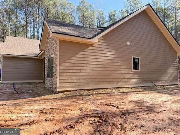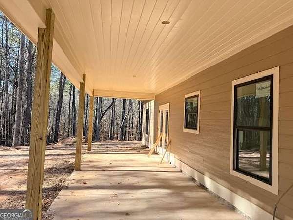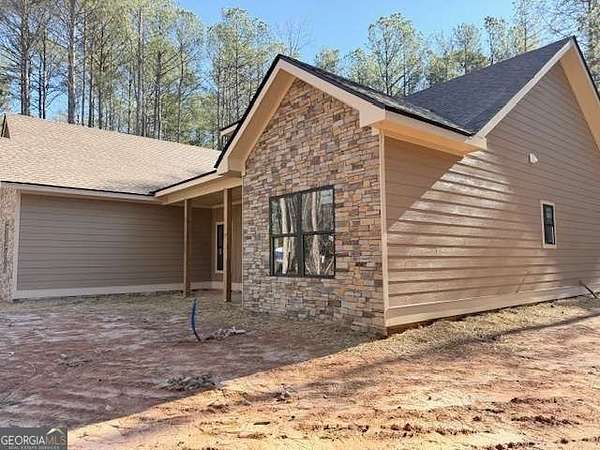 Brand new custom built Stepless ranch under construction. This gorgeous home offers eat in kitchen with granite counter tops, tile backsplash and stainless steel appliances. The home has a split bedroom plan with 3 bedrooms and 2 full bathrooms. The primary bedroom has a private elegant ensuite with double sinks with granite counter tops. Also a small make up vanity with a mirror. There are two additional spacious bedrooms. The laundry room has a private door from primary bedroom. There is a walk in pantry off the kitchen. The attic is fully insulated and the roof has 40 year designer shingles. The exterior has a lovely covered front rocking chair porch and a gorgeous full length of house covered back porch overlooking the beautiful private wooded back yard. The exterior has hardie plank siding and rock. The exterior windows have black frames. There is a lovely babbling creek in the back of the property. There is 3.31 +/- acres of land. The home sits down a long private driveway on a cul de sac lot. Two car side entry garage. Builder offer a 2-10 Builder warranty at closing.