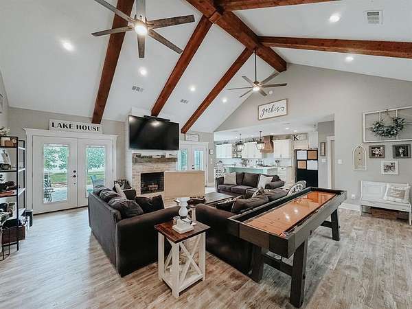 Designed to comfortably accommodate family and guests, the home includes 4 bedrooms, 3.5 bathrooms, plus a versatile bonus room ideal for a 5th bedroom, game room, or media space. With generous indoor living areas and wide-open outdoor space, this property delivers both functionality and refined lakeside living.