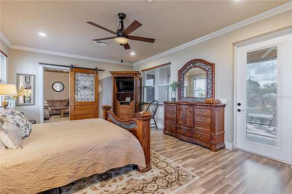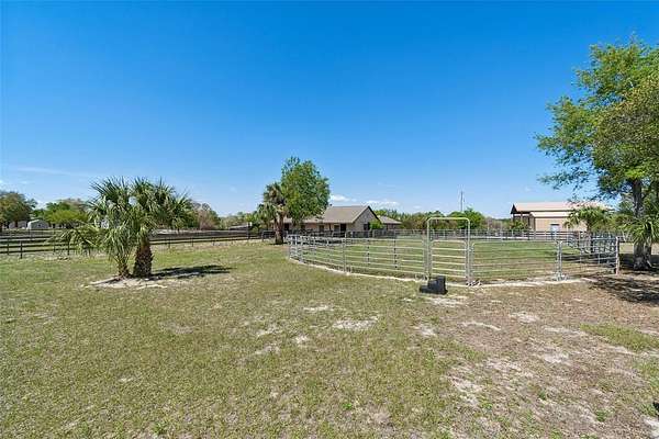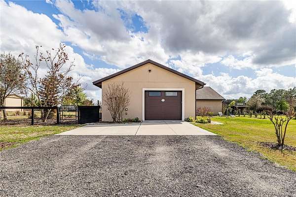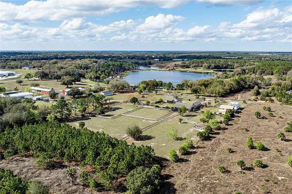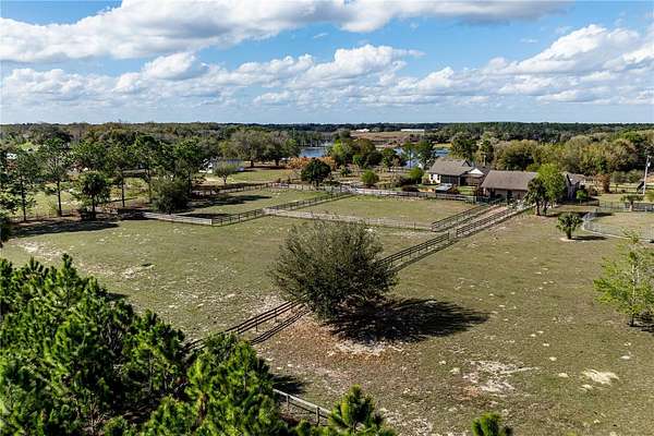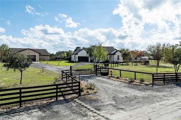 The grounds are equally impressive with FIRE PIT for relaxing evening. Enjoy a lush GARDEN area with irrigation, perfect for growing your own produce, along with a chicken coop for fresh farm eggs, creating a charming farm-to-table lifestyle. Additional Garage for storage or added workspace next to a 32 x 40 x 14 POLE BARN suitable for RV storage or horse trailer . While enjoying the WATER VIEW there is also WATER ACCESS by deeded easement. The expansive acreage provides both open pasture and tranquil space to relax, entertain, and enjoy nature just outside of the charming downtown Mount Dora area with shops and fantastic dining experiences.