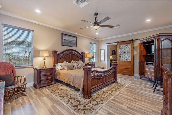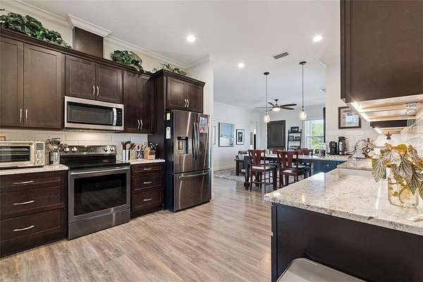 - Ceiling Fans(s), Crown Molding, Eat-In Kitchen, Primary Bedroom Main Floor