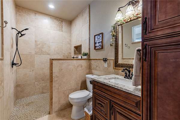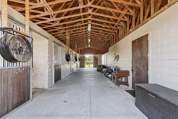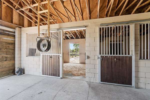 EQUESTRIANS will appreciate the 4-stall CONCRETE BLOCK BARN with auto waterers with private paddock for each stall, complete with a dedicated TACK ROOM complete with AIR CONTROLED environment, wash area with HEATED WATER as well as a riding arena that is 65 x 85, providing the perfect space to train, ride, and enjoy your horses on your own property. A separate 1 bedroom, 1 1/2 bathroom private apartment approximately 982 square feet ATTACHED to the barn offers outstanding versatility ideal for guests, extended family, a caretaker, or as a short-term rental for additional income potential.