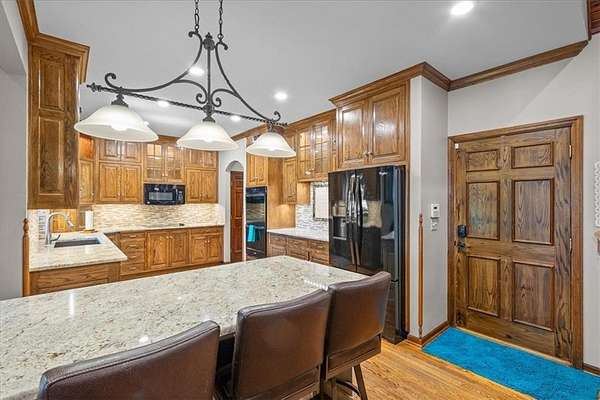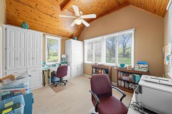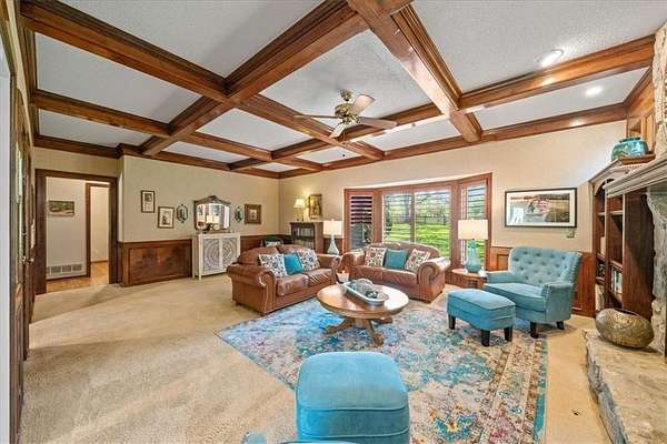 This stately 7200 SF home has great curb appeal. Original owner built the home 39 years ago with two major additions. The three-acre lot provides secluded living while having easy access to the whole KC Metro. Features include a main floor Primary bedroom plus a second Primary bedroom upstairs. The 5-bedroom 6-bathroom house is ideal for families. Fenced backyard for your dog too. The house is ideal for work from home, with his and hers offices, in different parts of the house. Entertaining spaces galore with Family rooms on the main floor and in the basement. A walk out basement also includes a massive game room. There is additional room in the basement for another bedroom and to add a shower to the existing half bath. The roof is a stone coated steel roof for fire resistance and durability. Construction quality is excellent. Mechanical system are 8 years old or newer in three separate zones. A new serpentine driveway adds to the curb appeal. Seller is providing a home inspection and survey. Seller is planning an estate sale for June 6-7. Possession can occur after June 9th , 2026.