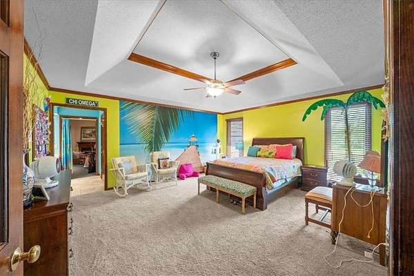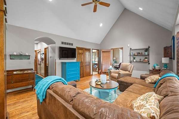 - Ceiling Fan(s), Custom Cabinets, Kitchen Island, Pantry, Vaulted Ceiling(s), Walk-In Closet(s)