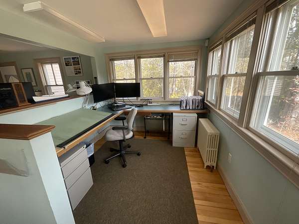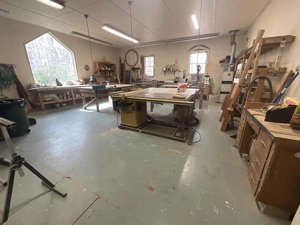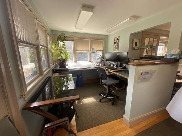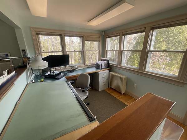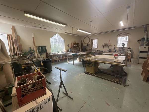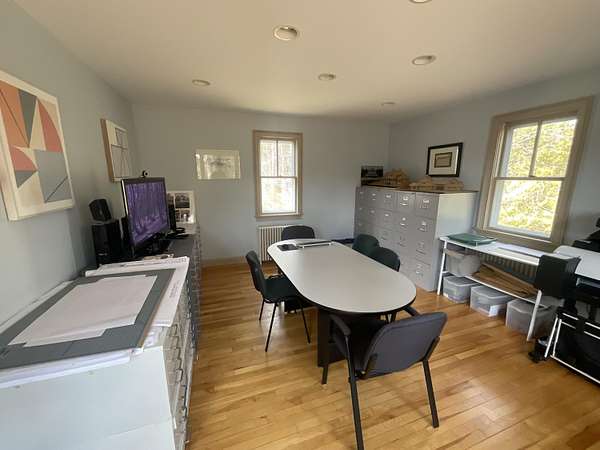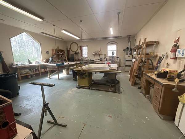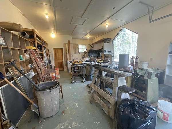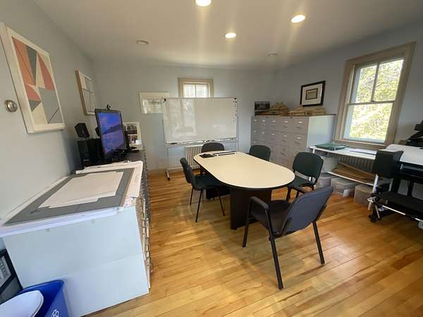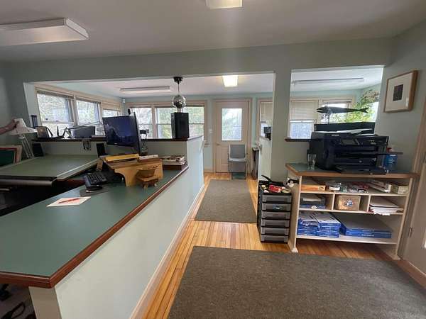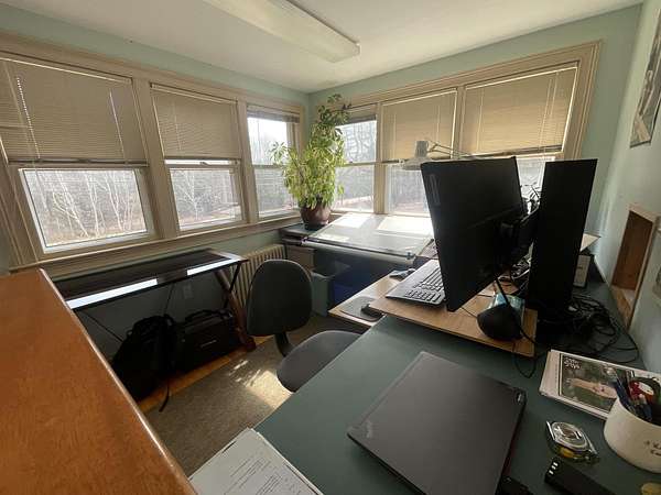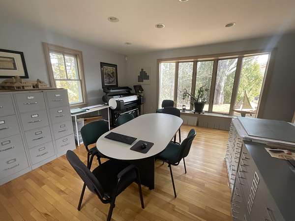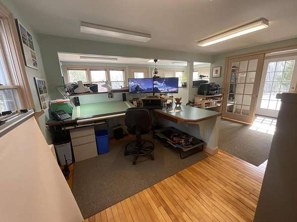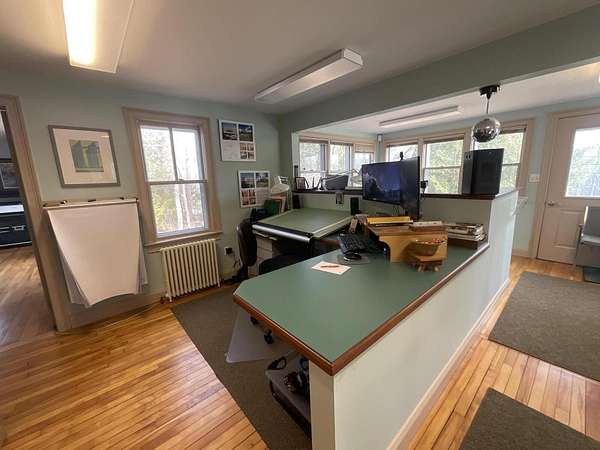 Live/Work or Investment Opportunity. This light-filled property is currently configured as an architect's office and offers flexibility for conversion to a residence or continued commercial use. Open interior spaces and ample windows provide good natural light, and the existing layout may help simplify a future renovation. The main level currently features a small kitchen, full bath, three office spaces and a conference room that could accommodate a kitchen and living area, along with a primary bedroom and bath. The upper level currently features two additional office spaces and a bathroom, offering space for additional bedrooms. Additional features include a 575 sq ft two-car garage with additional loading dock leading into the large, 1260 sq ft workshop. Currently used for woodworking, suitable for a range of uses such as studio space, small-scale production, or storage. A separate drive leads to a 1248 sq ft three-bay pole barn that may provide rental or storage options. The grounds include a pond and surrounding green space that offer privacy and seasonal outdoor enjoyment. Located near Camden, Mt. Battie, Lincolnville Beach, and the state park, the property provides access to local amenities and outdoor recreation. It may suit buyers interested in a combined live/work setup, rental income, or a renovation project. Key Features Light-filled open interior with defined areas that may support future conversion Potential for residential use, including kitchen, main-floor bedroom, and flexible upper-level layout Two-car garage and loading dock Large heated workshop attached to the garage, with good natural light and open interior space suitable for studio use, small-scale production, or storage Separate three-bay pole barn on a private drive, offering storage or possible rental use Pond and surrounding land with seasonal outdoor use Midcoast location with access to Camden, Mt. Battie, Lincolnville Beach, and nearby state park