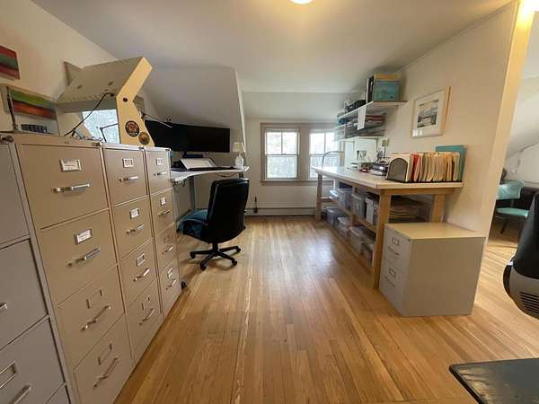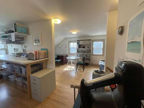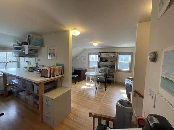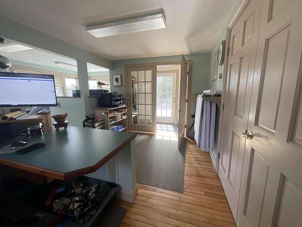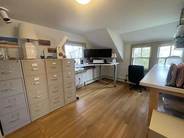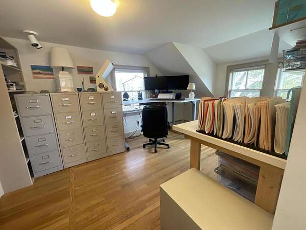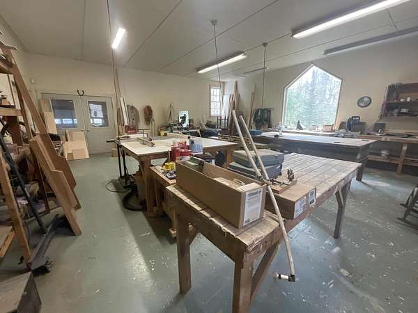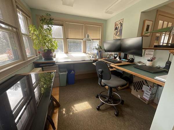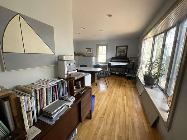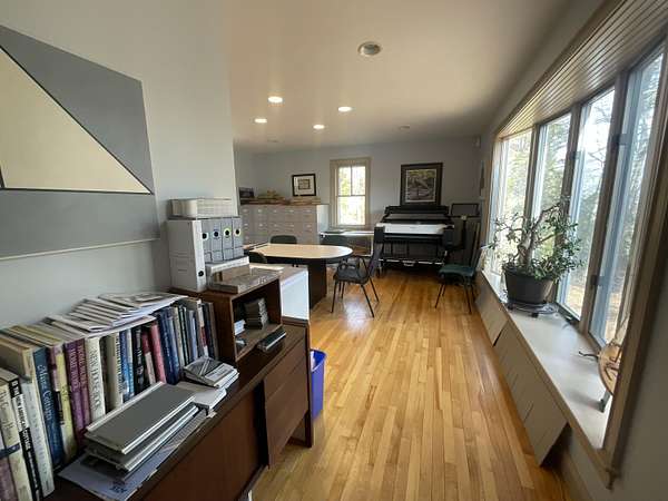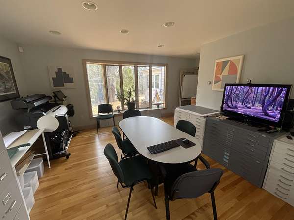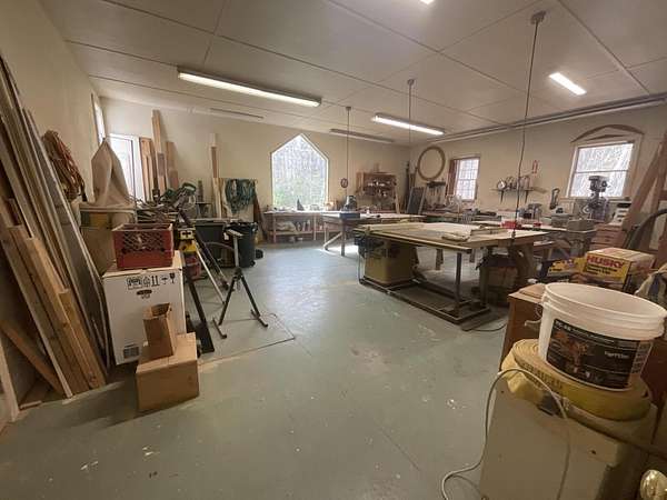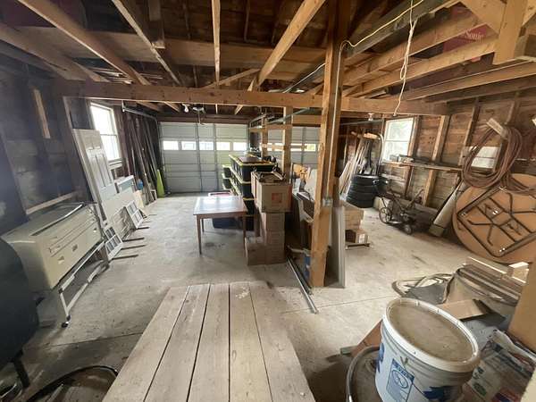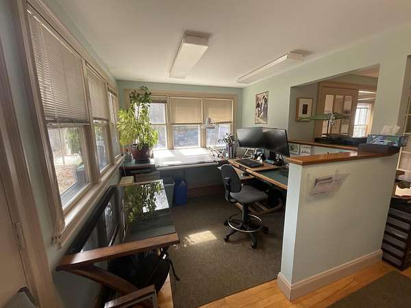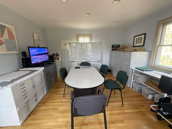 Live/Work or Investment Opportunity. This light-filled property is currently configured as an architect's office and offers flexibility for conversion to a residence or continued commercial use. Open interior spaces and ample windows provide good natural light, and the existing layout may help simplify a future renovation. The main level currently features a small kitchen, full bath, three office spaces and a conference room that could accommodate a kitchen and living area, along with a primary bedroom and bath. The upper level currently features two additional office spaces and a bathroom, offering space for additional bedrooms. Additional features include a 575 sq ft two-car garage with additional loading dock leading into the large, 1260 sq ft workshop. Currently used for woodworking, suitable for a range of uses such as studio space, small-scale production, or storage. A separate drive leads to a 1248 sq ft three-bay pole barn that may provide rental or storage options. The grounds include a pond and surrounding green space that offer privacy and seasonal outdoor enjoyment. Located near Camden, Mt. Battie, Lincolnville Beach, and the state park, the property provides access to local amenities and outdoor recreation. It may suit buyers interested in a combined live/work setup, rental income, or a renovation project. Key Features Light-filled open interior with defined areas that may support future conversion Potential for residential use, including kitchen, main-floor bedroom, and flexible upper-level layout Two-car garage and loading dock Large heated workshop attached to the garage, with good natural light and open interior space suitable for studio use, small-scale production, or storage Separate three-bay pole barn on a private drive, offering storage or possible rental use Pond and surrounding land with seasonal outdoor use Midcoast location with access to Camden, Mt. Battie, Lincolnville Beach, and nearby state park