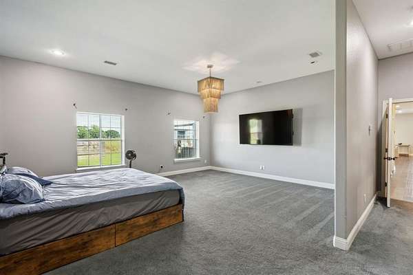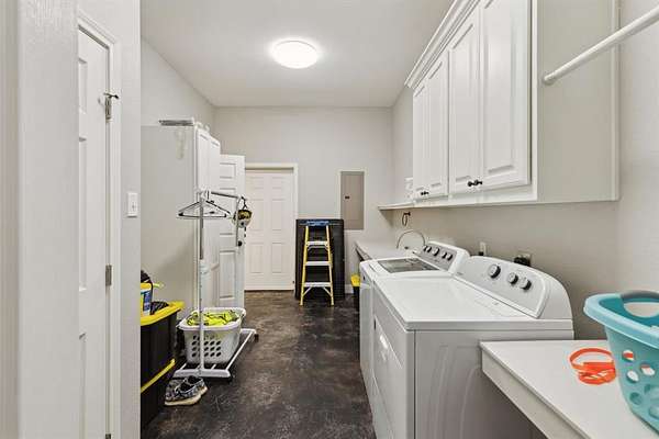Inside, soaring ceilings and expansive windows flood the open-concept living, dining, and kitchen areas with natural light--perfect for gatherings or peaceful evenings at home. The oversized master suite offers boutique-level comfort with space to unwind, while the massive laundry room and abundant high-end cabinetry throughout the home keep life beautifully organized. Your new home is energy efficient with foam insulation walls & attic, a tankless water heater, and 2 AC units.