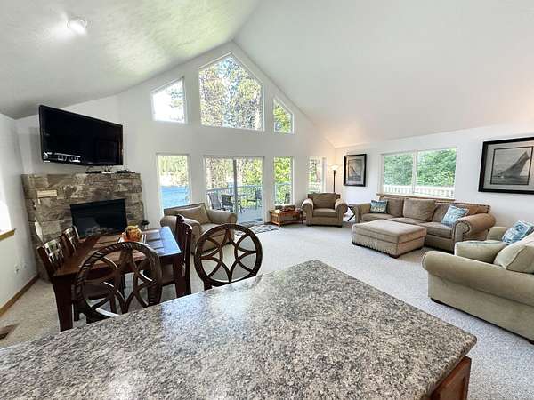 Chalet-style lakefront retreat with unbeatable, low-bank access to Lake Roosevelt--just 13 miles from town! This fully furnished getaway features 4 bedrooms (2 non-conforming), 2 bathrooms, and stunning lake views throughout. Cozy granite and stone fireplaces add warmth, while the wraparound Trex deck creates the perfect space to relax or entertain. Step right down to the beach, moor your boat out front, or use the public launch less than a mile away. Whether you're looking for a summer escape or a vacation rental opportunity, this property is ready to enjoy from day one.
