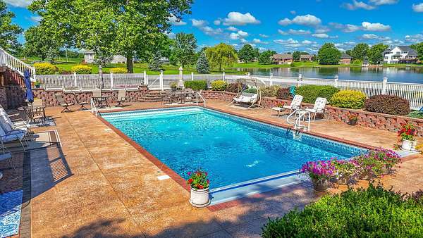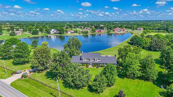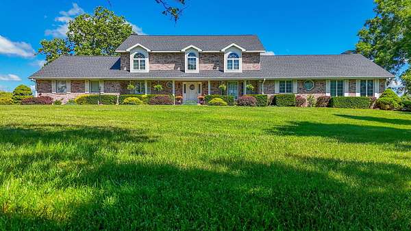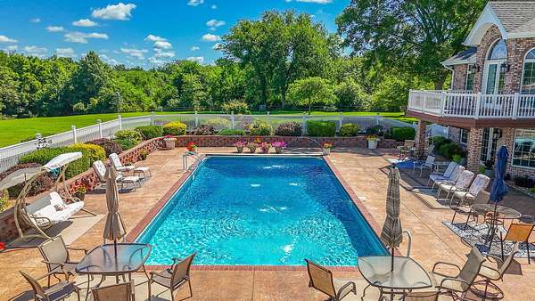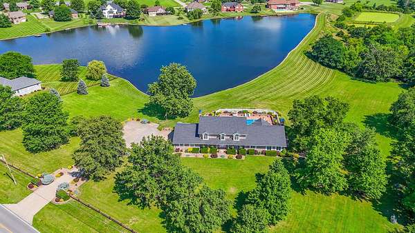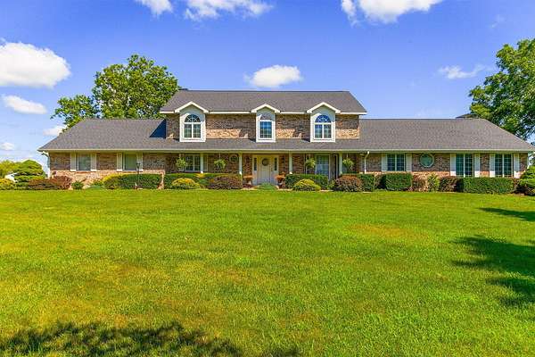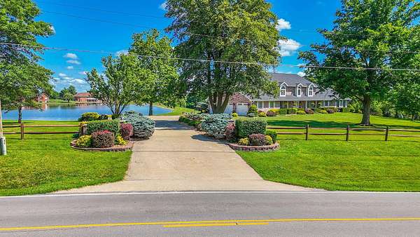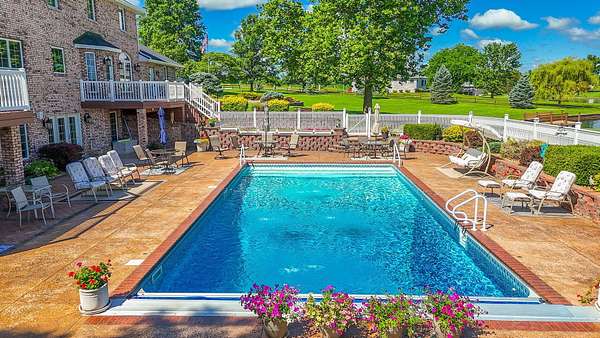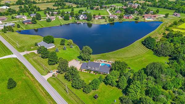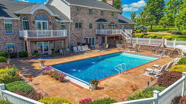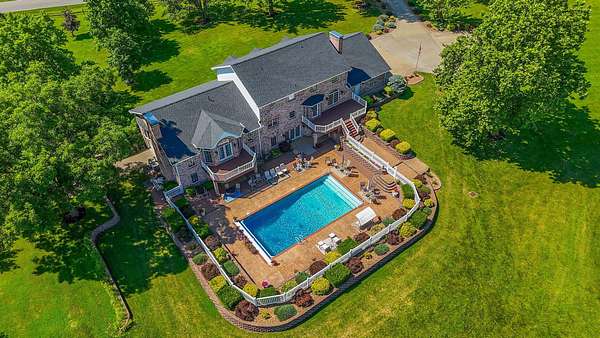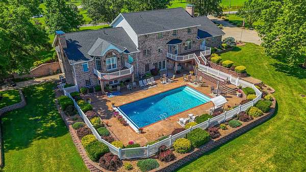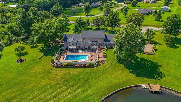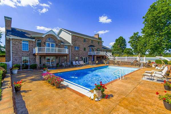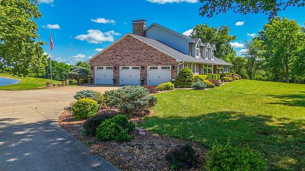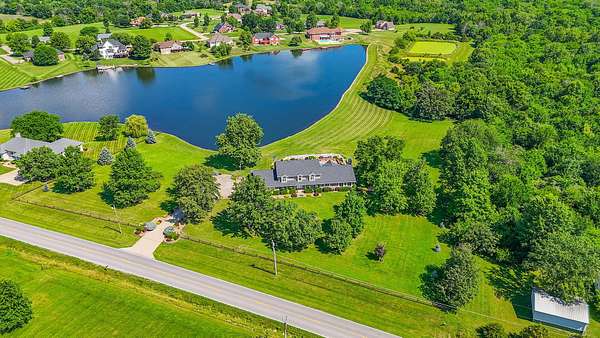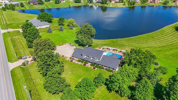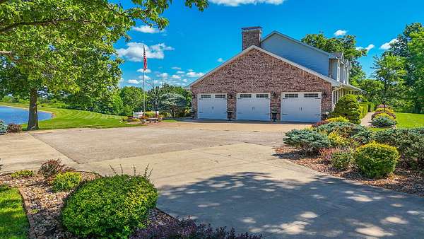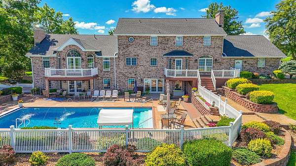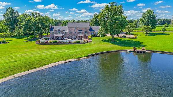 YOUR OWN PRIVATE ESTATE--A TRUE SHOWPLACE JUST MINUTES FROM TOWN! This 'one of a kind' custom-built stately two-story home is located on a highway just few minutes from town. This property is being offered for the first time by the original owner. This stunning, all brick 6 bedroom, 5 bath home is a rare opportunity to own a true showcase property blending comfort, luxury and exceptional craftsmanship throughout. Walk in and you will see the sophisticated allure, timeless beauty, spacious ambience with the exquisite millwork & thoughtful architectural finishes. Step inside to a supersized kitchen with custom cabinets & built-in appliances along with tons of storage w/ large island, perfect for entertaining & family gatherings which opens seamlessly into a family room with gas fireplace. This open floor plan also provides a living room bathed in natural light with a gas stone fireplace plus a built-in wet bar-ideal for hosting in style. A unique ceiling style shows no expense was spared in the original design. Walk out to your private balcony overlooking the heated inground pool and picturesque lake-perfect for year-round enjoyment! The main level primary suite includes a walk-in closet & spacious en-suite bath. A main-level laundry room & 3/4 bath complete the main level. The upper level boasts a second primary suite with a private bath, plus additional bedrooms & full bath, providing ample space for family, guests, or a home office. The full finished walk-out basement adds even more living space with a second kitchen, large family room with a gas fireplace, rec area with wood-burning fireplace, exercise area plus a 3/4 bath. An additional garage area and storage is on this level, too! Enjoy the incredible outdoor living for entertaining or relaxing around the inground pool and meticulously manicured landscaping. A 3-car oversized garage completes the package. Don't miss out on this incredible opportunity to own your very own private retreat!