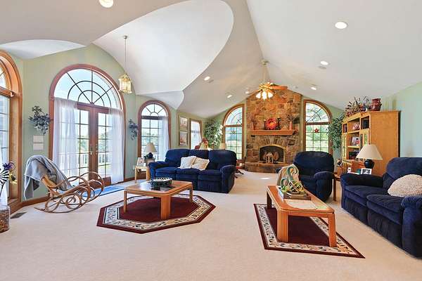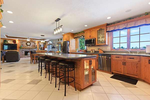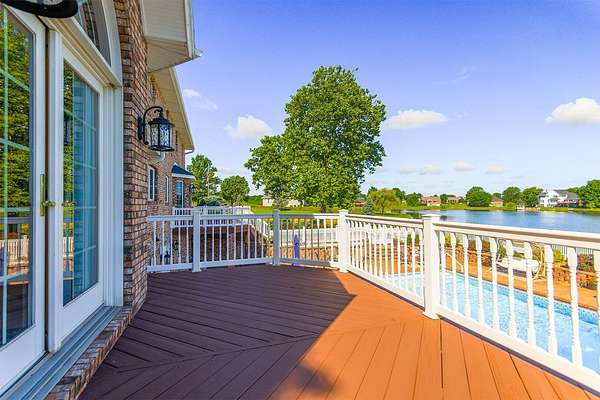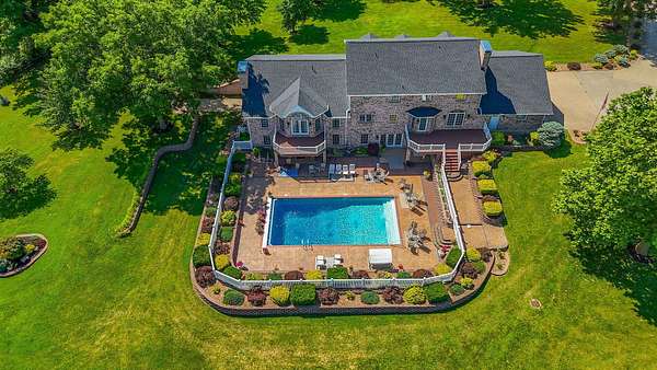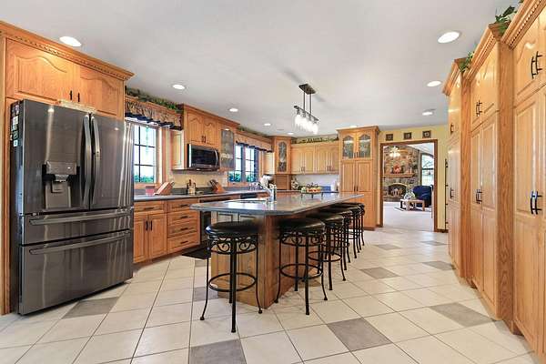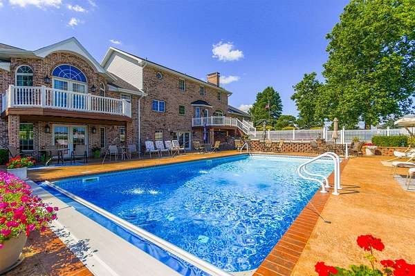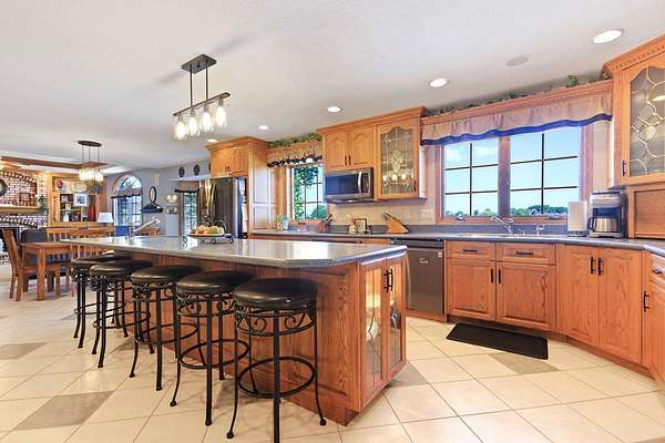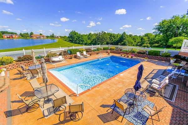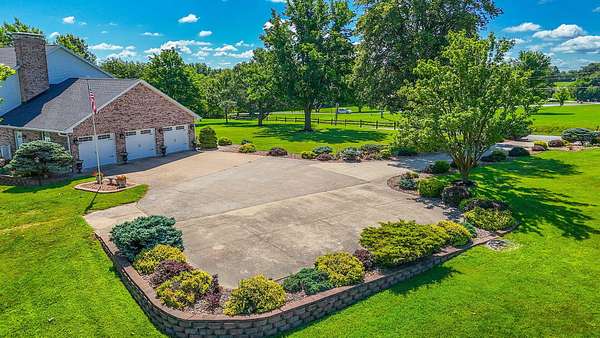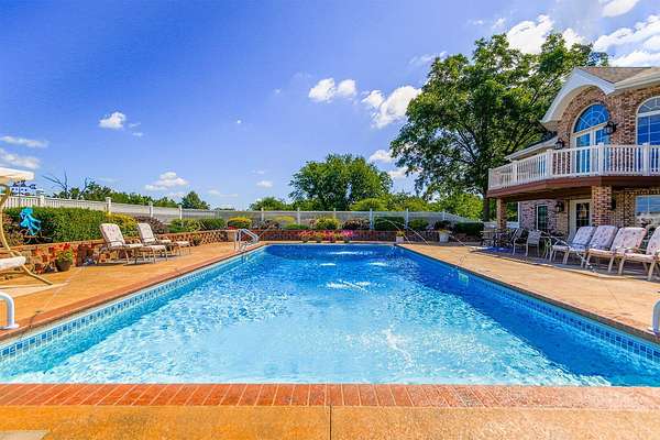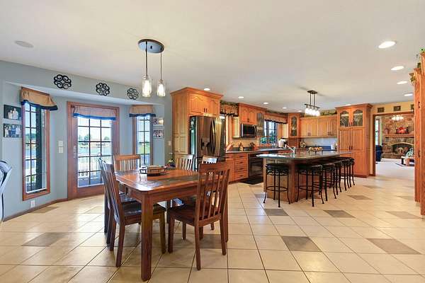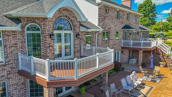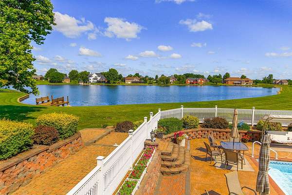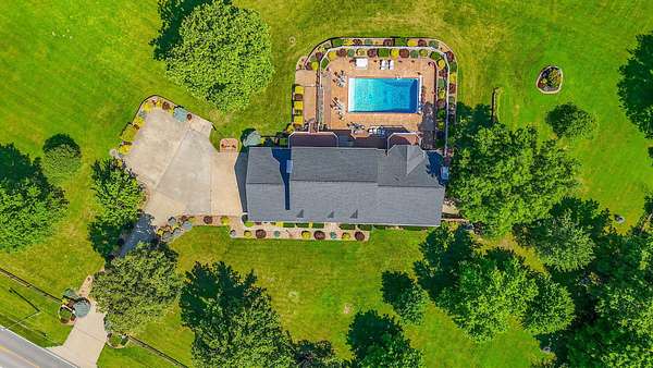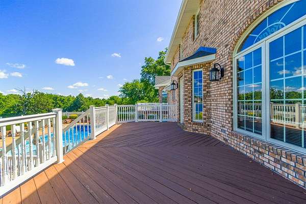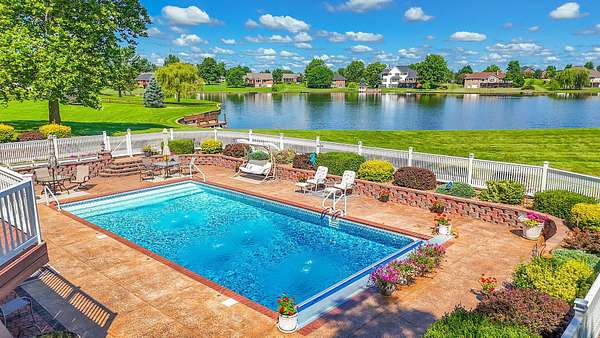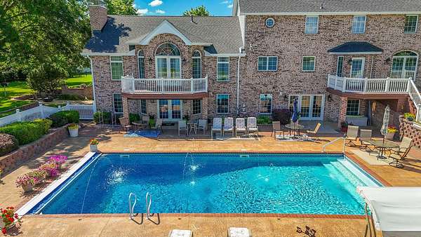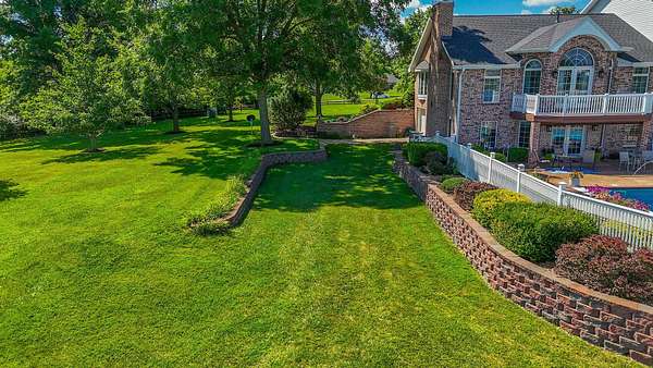 YOUR OWN PRIVATE ESTATE--A TRUE SHOWPLACE JUST MINUTES FROM TOWN! This 'one of a kind' custom-built stately two-story home is located on a highway just few minutes from town. This property is being offered for the first time by the original owner. This stunning, all brick 6 bedroom, 5 bath home is a rare opportunity to own a true showcase property blending comfort, luxury and exceptional craftsmanship throughout. Walk in and you will see the sophisticated allure, timeless beauty, spacious ambience with the exquisite millwork & thoughtful architectural finishes. Step inside to a supersized kitchen with custom cabinets & built-in appliances along with tons of storage w/ large island, perfect for entertaining & family gatherings which opens seamlessly into a family room with gas fireplace. This open floor plan also provides a living room bathed in natural light with a gas stone fireplace plus a built-in wet bar-ideal for hosting in style. A unique ceiling style shows no expense was spared in the original design. Walk out to your private balcony overlooking the heated inground pool and picturesque lake-perfect for year-round enjoyment! The main level primary suite includes a walk-in closet & spacious en-suite bath. A main-level laundry room & 3/4 bath complete the main level. The upper level boasts a second primary suite with a private bath, plus additional bedrooms & full bath, providing ample space for family, guests, or a home office. The full finished walk-out basement adds even more living space with a second kitchen, large family room with a gas fireplace, rec area with wood-burning fireplace, exercise area plus a 3/4 bath. An additional garage area and storage is on this level, too! Enjoy the incredible outdoor living for entertaining or relaxing around the inground pool and meticulously manicured landscaping. A 3-car oversized garage completes the package. Don't miss out on this incredible opportunity to own your very own private retreat!