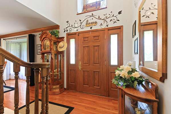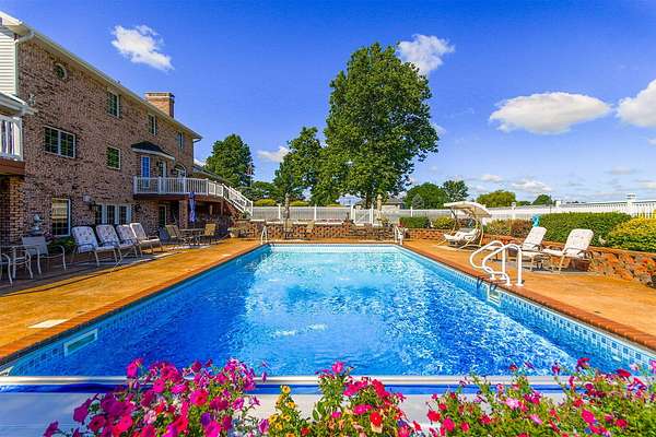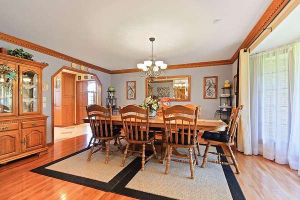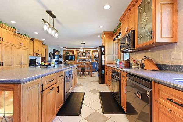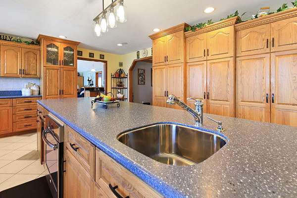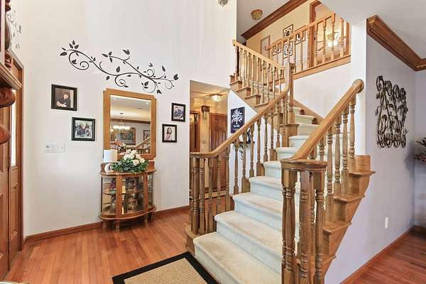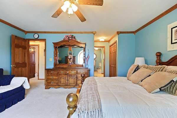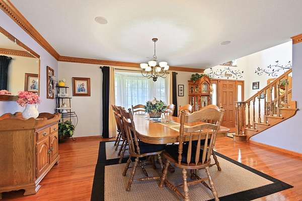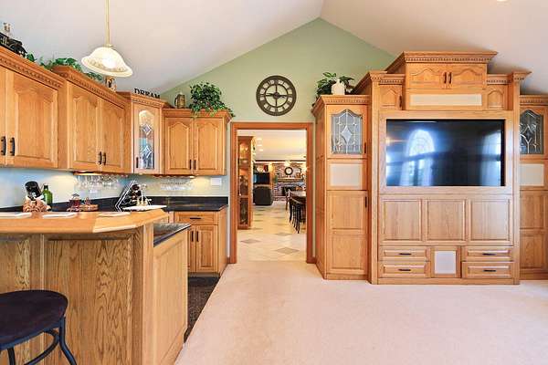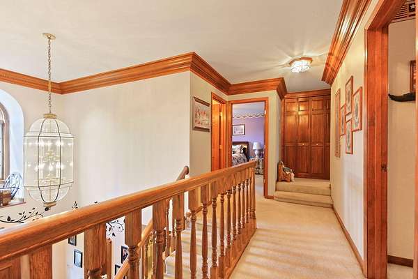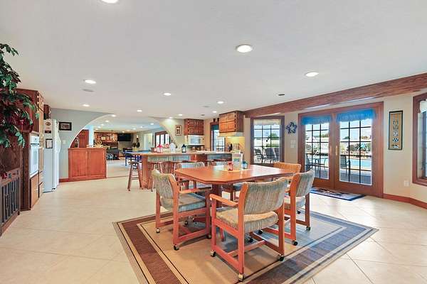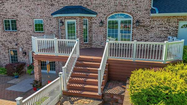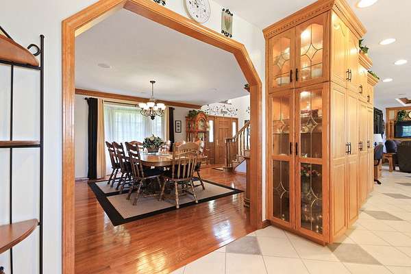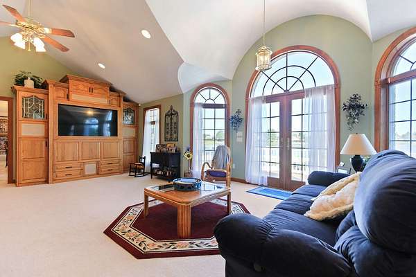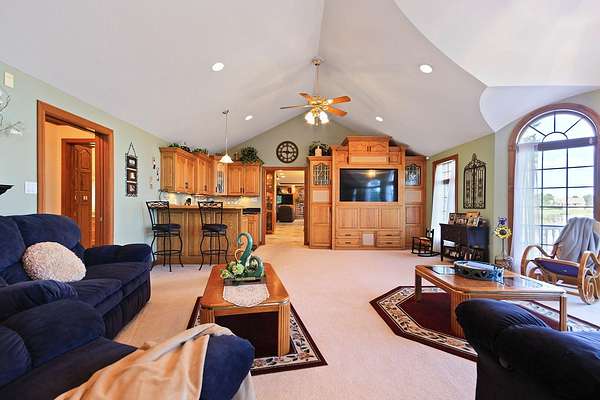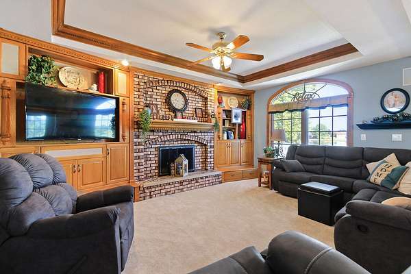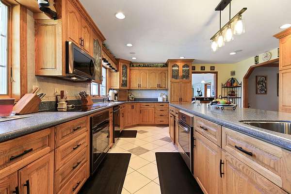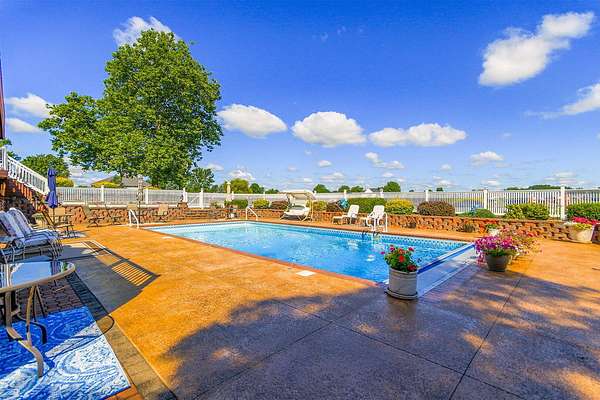 YOUR OWN PRIVATE ESTATE--A TRUE SHOWPLACE JUST MINUTES FROM TOWN! This 'one of a kind' custom-built stately two-story home is located on a highway just few minutes from town. This property is being offered for the first time by the original owner. This stunning, all brick 6 bedroom, 5 bath home is a rare opportunity to own a true showcase property blending comfort, luxury and exceptional craftsmanship throughout. Walk in and you will see the sophisticated allure, timeless beauty, spacious ambience with the exquisite millwork & thoughtful architectural finishes. Step inside to a supersized kitchen with custom cabinets & built-in appliances along with tons of storage w/ large island, perfect for entertaining & family gatherings which opens seamlessly into a family room with gas fireplace. This open floor plan also provides a living room bathed in natural light with a gas stone fireplace plus a built-in wet bar-ideal for hosting in style. A unique ceiling style shows no expense was spared in the original design. Walk out to your private balcony overlooking the heated inground pool and picturesque lake-perfect for year-round enjoyment! The main level primary suite includes a walk-in closet & spacious en-suite bath. A main-level laundry room & 3/4 bath complete the main level. The upper level boasts a second primary suite with a private bath, plus additional bedrooms & full bath, providing ample space for family, guests, or a home office. The full finished walk-out basement adds even more living space with a second kitchen, large family room with a gas fireplace, rec area with wood-burning fireplace, exercise area plus a 3/4 bath. An additional garage area and storage is on this level, too! Enjoy the incredible outdoor living for entertaining or relaxing around the inground pool and meticulously manicured landscaping. A 3-car oversized garage completes the package. Don't miss out on this incredible opportunity to own your very own private retreat!