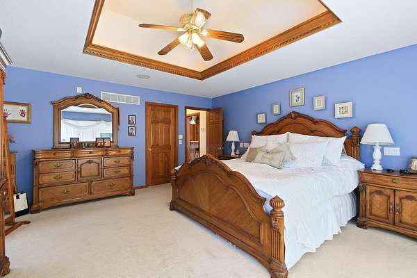 - Ceiling Fan(s), Eat-In Kitchen, Great Room, Main Level Laundry, Main Level MSTR Bedroom, Master Bath, Recessed Lighting, Tray Ceiling(s), Walk-In Closet(s), Walk-In Shower, Wet Bar