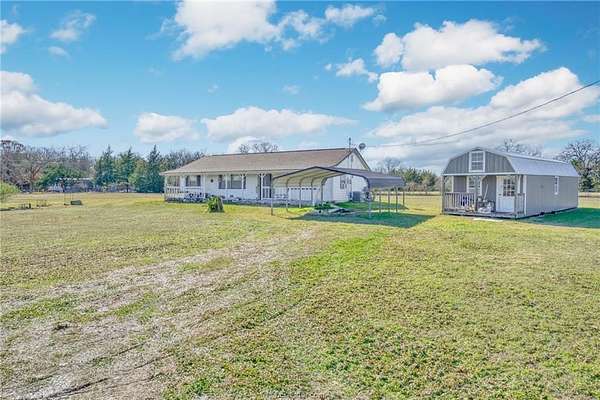Come home to serene country living in the Huntsville West 22 Addition in Bedias, TX where this cozy home is situated on a beautiful 3.00+/- acre parcel centrally located between Huntsville and BCS. This 1200 SF farmhouse features a split plan, 3-bedrooms, 2-bathrooms, and an open concept kitchen and dining area. Outdoors, the open property offers perimeter fence, a private pond, detached carport, and a storage building that can be purchased separately. There is no HOA or deed restrictions; your garden, RV, ATVs, and animals are welcome. Conveniently located just a 30-minute drive from College Station or Huntsville, this property supports private rural living and easy access to city amenities. Make 21234 Harrison Dr. your new full-time residence or weekend retreat.