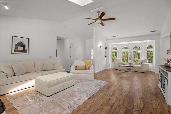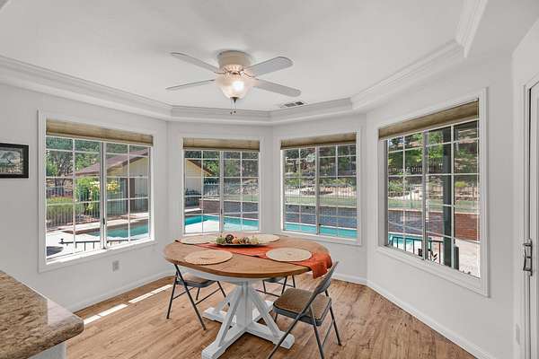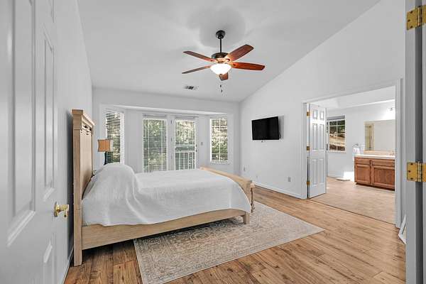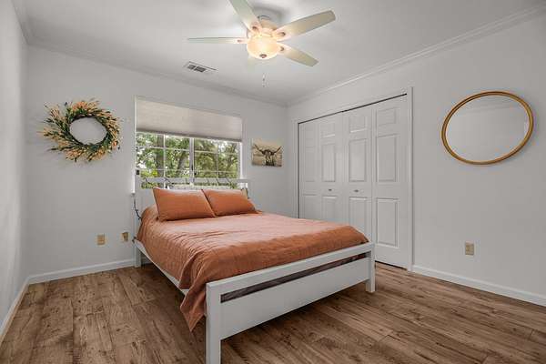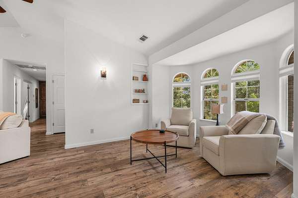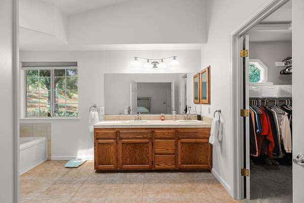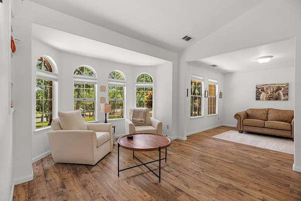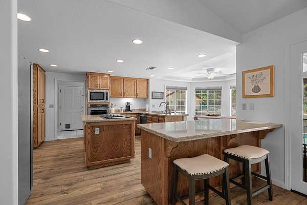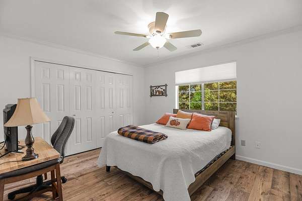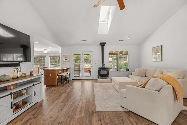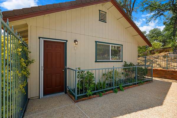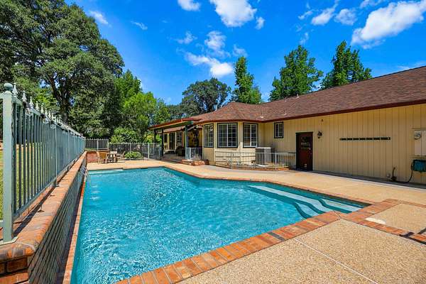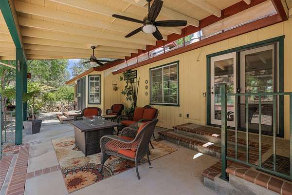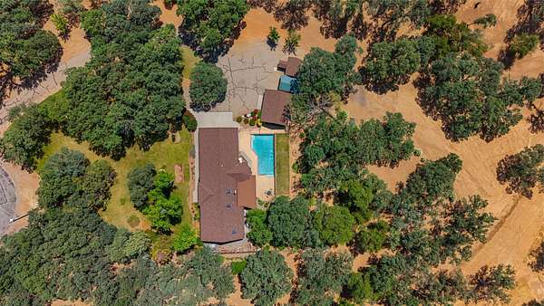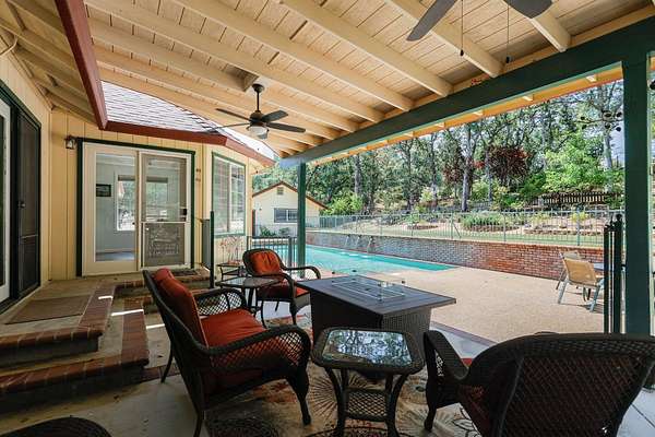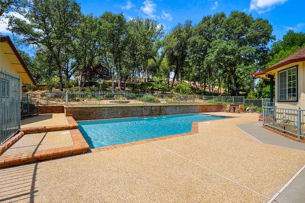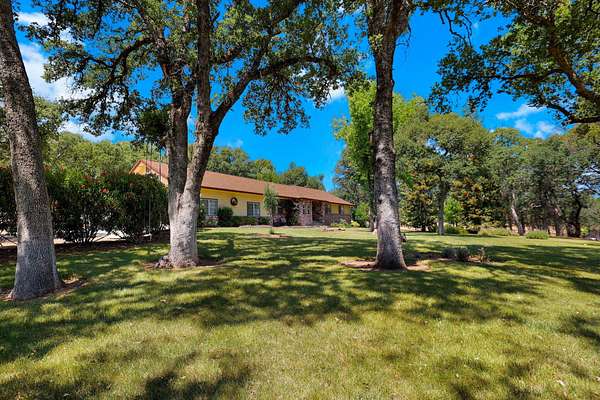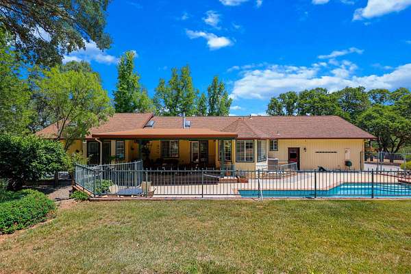Experience the perfect blend of comfort and serenity with this beautifully maintained 3 bed, 2.5 bath home set on 3 park-like acres. Enjoy the open floor plan with vaulted ceilings and an abundance of natural light. Updated kitchen with new appliances and quartz countertops. Additional updates include newer flooring and a new roof (2022) adding modern style and function. Professionally painted interior, new blinds, and updated irrigation enhance the fresh, move-in ready feel. The backyard is a true oasis featuring an inground pool with a fountain, a covered patio, and lemon and lime trees. The pool house includes plans drawn to convert it into an ADU, offering added potential. Additional features include a whole house fan and plenty of space to relax or entertain in a peaceful, private setting.