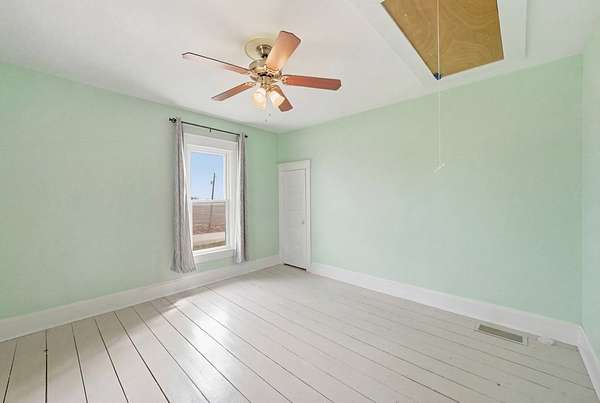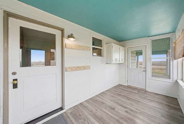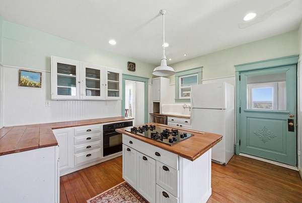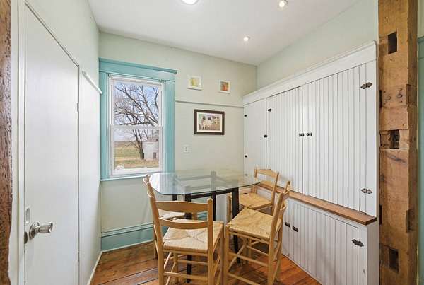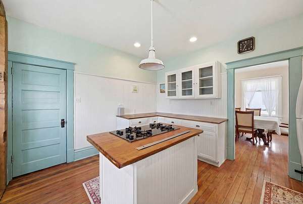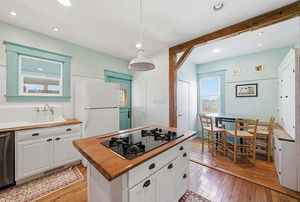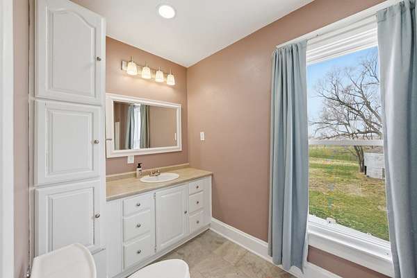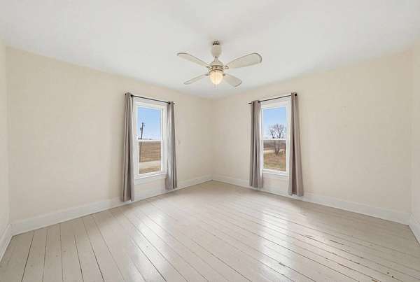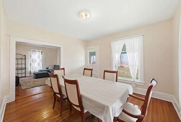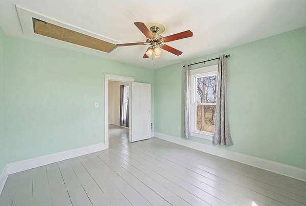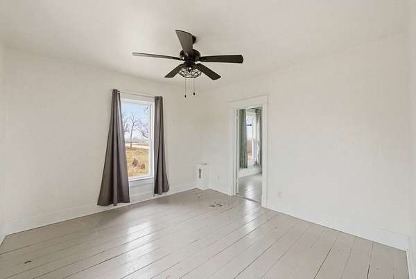 Enjoy the perfect blend of charm, space, and peaceful country living with this inviting farmhouse-style home situated on 3.79 acres just south of De Soto. This character-filled property features 4 bedrooms and 2 full bathrooms, including one bedroom and full bath on the main level, ideal for guests or flexible living. Upstairs offers three spacious bedrooms, a second full bathroom, and convenient laundry area. The main level boasts beautiful hardwood floors, a large living room, formal dining space, and a bright kitchen complete with butcher block countertops, center island with cooktop, and ample cabinetry, along with a cozy breakfast nook and functional mudroom. Step outside to take in wide-open views from the covered front porch and enjoy the space and privacy that nearly 4 acres provides. Additional highlights include a new roof and a great balance of rural tranquility with easy access to nearby communities. All information obtained from seller and public record.