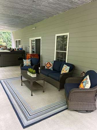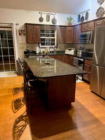 Est $2,061/moRare find for this area! Located in Enochsburg, this 1.5 story home with a full finished basement! Located on 4.29 ac with a mostly wooded lot with Salt Creek bordering the back side. Features 3 BR, 2 full bath, bonus room on main level and private BR on upper level. Kitchen is composed of granite counters, an island and SS appliances. Liv Room & Kitchen have cathedral ceilings and hardwood throughout. Basement is a walkout w patio doors and windows across the back. Also has family room area, rec area and kitchen or bar area as well as a full bath! Covered concrete patio across the entire back as well as a composite deck above. An area near the creek would be great for a fire pit etc