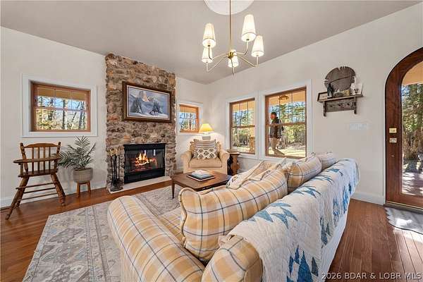 Step into a storybook setting where brand-new construction meets timeless cottage charm-this home feels straight out of a fairytale on 60 Acres. Thoughtfully designed with timeless finishes throughout, this property captures cozy, whimsical living through custom cabinetry, vaulted ceilings, arched doorways, real hardwood floors, and a bright, open layout that feels elegant and inviting. The spa-like bathroom offers a walk-in tile shower and soaking tub, creating the perfect retreat. Three levels of living include a charming upstairs loft and an unfinished walk-out basement ready for your personal vision. Outside, a beautiful detached two-car garage with loft and its own porch adds both function and character. Enjoy peace of mind with Sherwin-Williams Emerald Rain Refresh paint with a lifetime warranty, LP SmartSide siding with a 50-year warranty, and a #1 cedar shake roof with a 40-year warranty. A stunning cedar wraparound porch frames serene sunrises and sunsets on private land provide excellent deer hunting and a private stocked pond. Ideal as a full-time home or dream vacation getaway.