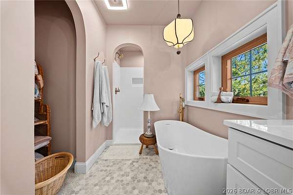 - Built In Features, Custom Cabinets, Fireplace, Vaulted Ceilings, Walk In Closets, Walk In Shower