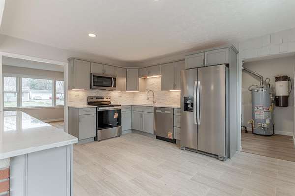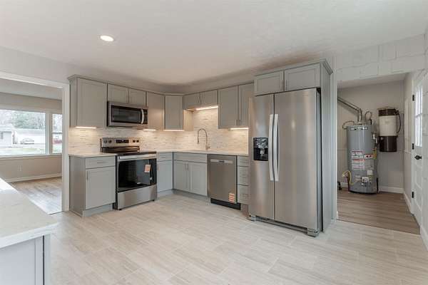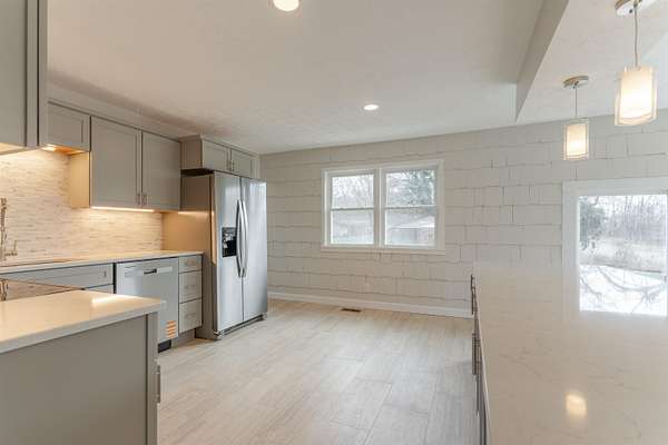 Beautifully Remodeled Cape Cod on 1.6 Acres. Welcome home to this charming 1½-story Cape Cod nestled on a 1.6-acre lot. Offering 1,713 sq ft, 4 bedrooms, and 2 full bathrooms, this home has been thoughtfully remodeled in 2025-2026 with modern finishes while maintaining classic character. Inside, you'll find brand-new tile flooring, refinished hardwood floors, fresh neutral paint throughout, and a new electrical panel for peace of mind. The bright, updated kitchen features stylish cabinetry, new stainless steel appliances, tile backsplash, peninsula that connects additional dining or living area, and contemporary lighting-perfect for everyday living and entertaining. Both bathrooms have been fully updated with tiled tub/shower surrounds, giving a clean, modern look. Additional major upgrades include a new roof, new windows, new sliding door to back patio, and a new vapor barrier, making this home truly move-in ready. Outside, enjoy the space and privacy of the expansive lot, complete with a detached garage, ideal for storage, a workshop, or hobbies. This property offers the perfect blend of comfort, updates, and room to breathe.