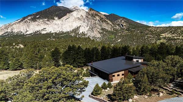 Now offered at $4,950,000, this newly built mountain estate presents a rare opportunity to own a design-forward residence with unobstructed views of Mt. Antero, Mt. Princeton, and the Chalk Cliffs, thoughtfully positioned as an exceptional value in today's luxury market. A gated entry and intentional approach unveil a residence where sustainable, energy-efficient design is executed with exceptional architectural precision. Interiors showcase rich Maplewood finishes, plastered walls, stacked stone accents, and soaring cedar T&G ceilings that extend seamlessly into expansive covered outdoor living spaces. The great room is framed by floor-to-ceiling mountain views and anchored by a sleek gas fireplace, flowing effortlessly into the dining area and gourmet kitchen equipped with Wolf and Sub-Zero appliances. A fully soundproofed media room and integrated smart-home networking system enhance both everyday living and entertaining. The primary suite offers a private retreat with a fireplace and a spa-inspired bath featuring floating dual vanities, soaking tub, double-headed steam shower, custom walk-in closet, and a dedicated washer/dryer. Two additional en-suite bedrooms provide luxurious accommodations. Designed for entertaining, the lower level includes a third fireplace, mountain views, and a secondary kitchen area. The home is fully outfitted with Sonos speakers, central vacuum, and pre-wiring for mounted TVs throughout. Outdoor living rivals the interior with a covered deck with full outdoor kitchen and fireplace, a private hot tub patio, and 22 acres spanning three parcels, offering privacy and open space. Heated garages include granite counters, built-in air compressors, and EV chargers. With its rare combination of new construction, premium finishes, acreage, and iconic mountain views, this exceptional estate delivers outstanding value for mountain retreat of this caliber. Experience in person to fully appreciate the craftsmanship and panoramic mountain views!