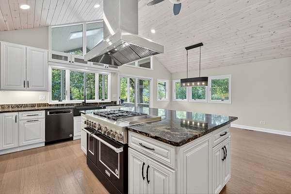 Stunning! Spectacular! Amazing! An Entertainers Dream House! Are just some of the words you will use to describe this richly remodeled and updated 6000+ square foot 5 bedroom/4 full bathroom hillside ranch on 1.66 wooded and private acres!!! A long and winding semicircular asphalt driveway leads you up to this estate home with a magnificent canopy of mature trees, lush landscaping, a Koi Pond, and peaceful waterfall at the entrance to this home. Step inside to a warm and inviting sanctuary that is flooded with natural light no matter which way you turn. Step down into the sunken living room with hardwood floors and a floor to ceiling stone wood burning fireplace for those cold winter nights. Move on into the custom and awe-inspiring eat-in kitchen with high end SS appliances, and an expansive island and breakfast bar that easily sits 8-10 people. If you love to entertain, this spectacular kitchen is large enough to accommodate any catering crew you could hire to serve your guests on those special occasions. Or you and your family members can do all the meal prep yourselves and not have to worry about bumping into one another. From the kitchen, step into the screened in porch where you can enjoy your coffee in the mornings, or bug free meals, or even a game night all the while watching the deer as they meander through the backyard. After a long day, retire to the luxurious ensuite that features vaulted ceilings, a wood burning fireplace and one of the most luxurious bathrooms you could ever dream of - double vanities, separate make up vanity, extra deep soaking tub with bubbler and heated back, oversized walk-in multi-spray shower with 2 handheld shower heads, a rain dome, with U by Moen programable settings that can be controlled by an app or Alexa, a heated bench in the shower, a heated floor and a heated towel bar - WOW!!! In addition to the ensuite, you will find three more generously sized bedrooms with exceptional closet space on the main floor. Sit quietly in your wicker furniture with a good book or a glass of wine in the all glass sunroom - a place your plants will thrive in. Let's move downstairs to the finished walkout basement as this is where everyone will want to be for the big game or those special occasions!!! Come and experience the magnitude of the 34' x 23' family room with wet bar and the inviting fireplace pit. This is party central!!! Imagine all the memories and gatherings with family and friends you can have down here. Play pool or ping pong, set up your own arcade area, hang all your sports memorabilia, have awesome movie nights - the options are endless. There is even a 2nd kitchen immediately adjacent to this space!!! Need an in-law arrangement or a teen getaway? Then look no further as there is a 5th bedroom and a 4th full bathroom and a large rec room also in the finished walkout basement. The attached 2.5 car garage is set up with an electric car charging station. Now for the "piece de resistance" - there is a detached 1125 square foot brick and cedar garage that is the perfect place for your car collection, RV, boat, sleds and even a workshop. This estate home is located in the highly coveted Stevenson High School District, and is within minutes of the commuter train station, the interstate, shopping, restaurants, parks, and area forest preserves. Do not miss the opportunity to make this your next home!!!