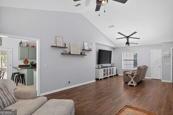 Your own private oasis awaits you! Situated on 2.37 acres, there is room to expand. Located in the county without city taxes or an HOA, this home offers many possibilities, including chickens or a garden! The property offers a chicken coop, serene pond ready to be stocked with fish of your choice, storage/well house, room for RV/boat parking, fenced yard space, a screen porch, & more! Step inside to updated features such as wood looking tile floors, modern lighting, neutral paint colors, an abundance of natural lighting, a sizable living area with a brick fireplace, vaulted ceilings, stainless steel appliances, breakfast bar & dining area, pantry, and spacious laundry room/mud room. The roomy master retreat boasts a generous layout trey ceilings, double vanity, separate soaking tub & shower, ample walk-in closet space, & private water closet. Down the hall are 2 bedrooms and 1 guest bath & additional storage space. TDS high speed internet is available here! Convenient short commute to Kingsland or Brunswick. This home is not expected to last long. Easy to show or see. Call to schedule your private tour today!