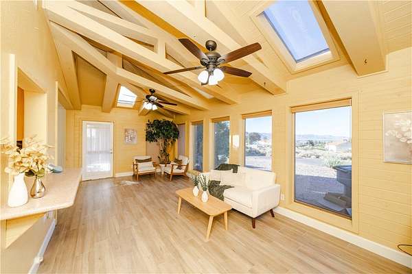 GORGEOUS 2026 SF CUSTOM BUILT 3 BEDROOM, 3 BATHROOM HOME W/ARIZONA SUNROOM AND LARGE 835 SF 3 CAR BOAT DEEP GARAGE-RV HOOK-UPS* PERFECTLY SITUATED ON A 1.71 ACRE CORVER LOT * INCREDIABLE VIEWS OF THE CITY*You will LOVE the pristine neighborhood of HUALAPAI FOOTHILLS ESTATES! Situated on the eastern boarder of the city of Kingman and rising in elevation as you near the base of the mountain, this quiet subdivision is distinguished by its large lots, pride of ownership, and stunning views of the majestic "Hualapai Mountain" range* Low maintenance landscaping w/ decorative rock, mature trees & foliage*Circular concrete driveway and RV parking offers plenty of room for all the toys* 2 x 6 wood frame & stucco construction, flat tile roof, neutral colored exterior *NEWER CENTRAL HEAT/AC SYSTEM( 2020)*Inviting PRIVACY COURTYARD with built-in firepit*French style metal screen doors leading in to the lovely foyer with new wood slate tile flooring* Spacious living room with vaulted ceilings, pot shelves, cozy gas log fireplace & sliding glass door to covered patio*dining area off the kitchen with large view windows for natural lighting* Perfect chefs kitchen with so many features including a full size bakers bar, food pantry, Corian countertops, plenty of upgraded light maple wood cabinets, breakfast bar, farmhouse lighting above sink, 5 burner gas stove/oven, dishwasher, built-in microwave, refrigerator*Large Arizona Sunroom with wood slate tile flooring, skylights, large view windows and farmhouse style door with guest bathroom(3rd) offering newer vanity, commode and custom walk-in tiled shower* King-size owner's suite w/sliding glass door to covered patio, newer carpet , cozy gas log fireplace w/farmhouse cover, newer vanity and HUGE TILED walk-in shower w 3 showerheads*full size 3rd bedroom has wood laminate flooring & ceiling fan*Full size guest bathroom (2nd) with newer vanity, commode & custom tiled jet tub/shower w/grab bar* 2nd full size guest bedroom has tiled flooring and fan/light*In-door laundry with built-in cabinets & utility sink*Large 835 sf 3 car garage with insulated garage doors* Large covered patio with privacy area and power ready for your HOT TUB plenty of room for a large pool or another garage/rv garage *Within 1 hour drive to Lake Havasu City AZ, Laughlin Nevada, Lake Mohave and the Colorado River