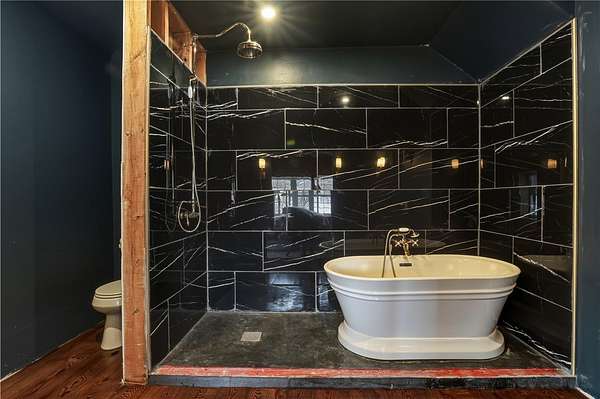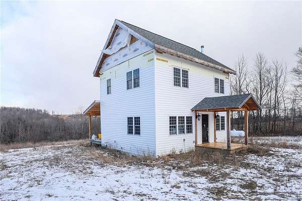 Your dream homestead is waiting for you at the end of a dead end dirt road, surrounded by deep country. 96 acres that is a 50/50 split of woodland and open fields. Gorgeous views of the surrounding mountains from the open fields. In the far back corner you'll find a 1.5 acre pond w/ 3 springs. 220ft deep well and new septic system. 8X16 cabin w/ a covered porch. 40x40 barn at the end of the driveway is 13'6'' tall with sliding doors in the front and rear to hold larger equipment. The new construction home will need to be finished. But it does have on demand hot water and lines for propane/water to kitchen and bathrooms. The kitchen is stunning with moody finishes and a gorgeous Viking stove. The primary bathroom has been tiled and is setup like a wet room with a focal point soaking tub. Wood stove in the center living space will heat the entire home easily. With all 3 stories made with poured concrete foam block, the house is extremely efficient. The roof is 2x12s with R36 insulation. All of the hard work is already done and now it just needs your finishing touches! Ask your lender about a rehab or construction loan.