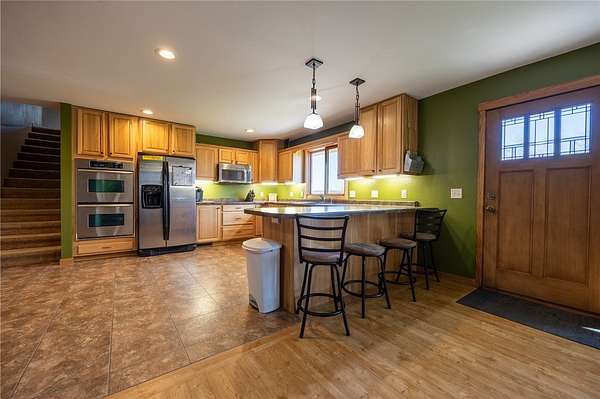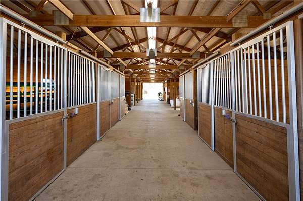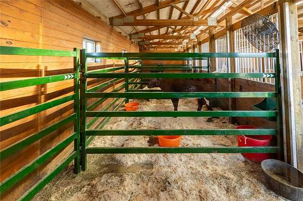 Horse Farm w/many optional uses! Currently being used for beef cows. This 40-acre property includes: 40x120 horse stable with heated wash rack enclosed. Climate controlled vet room, 6 single box stalls, 1 double box stalls, foaling lean-to, office space/storage. Hay storage with vaper barrier, tack room enclosed 9x8. Outdoor wash rack with overhang and water. 4 paddocks & 3 with shelter. 8 heated waterers. 10 fenced pastures with water. Outdoor riding arena with geo-tile and sand. 24x50 calving, handling shed with water & electric, 40x55 pole shed half concrete floor 1/2 hay storage, 1/2 workshop. 3 bd, 2.5 bath home. Home remodel in 2012 with new kitchen, 2 bathrooms, windows, roof. 2016 pressure tank & furnace. 2020 water heater, 2021 boiler, 3 car garage with heated floors & 6x6 walk in cooler.