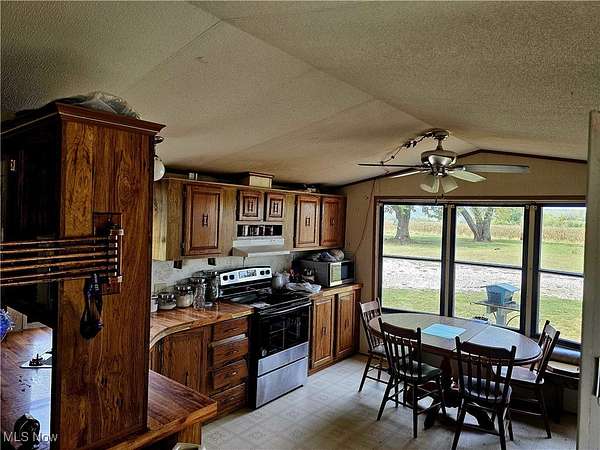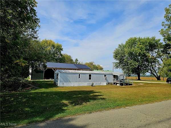 Welcome to country living. With just over 5 acres and a single wide mobile home with some updates. A new gas furnace was installed in 2024 and with the free gas that comes with the property as well as the lease to own solar system this could be low cost living and every homesteaders dream. You can update the mobile home to your liking or build your dream home where the old farm house used to stand. Outside you will find a large 38 X 84 pole building that can hold all your equipment or toys, as well as an older 24 X 48 corn crib with a chicken coop attached and a smaller detached garage. Half the land is wooded and has a small creek running through it. This is prime deer country so you could set up a stand to hunt from your own land. Call your agent for a showing of a property with a lot of potential.